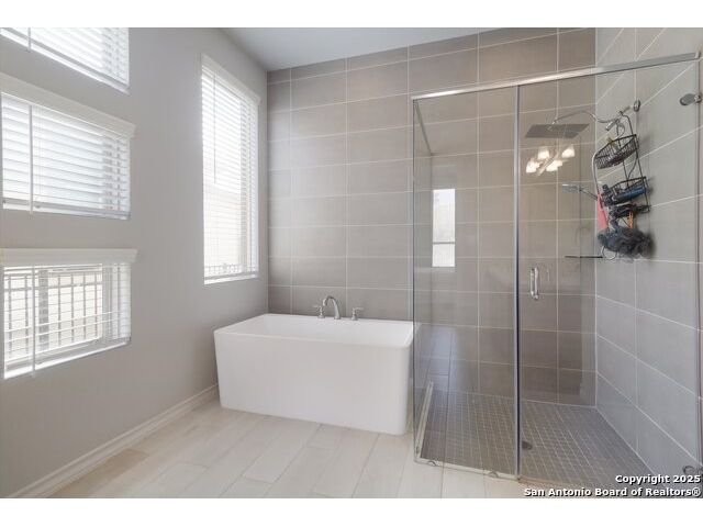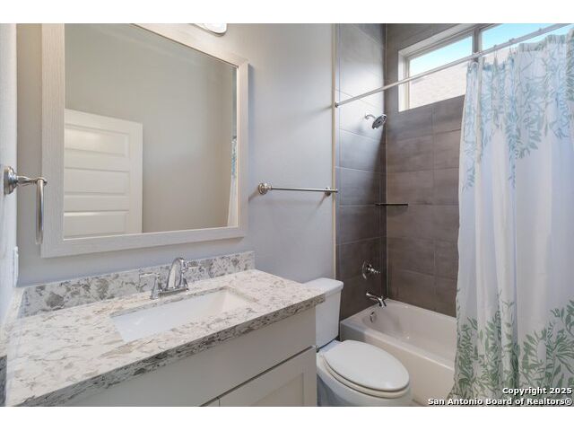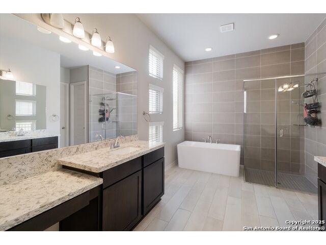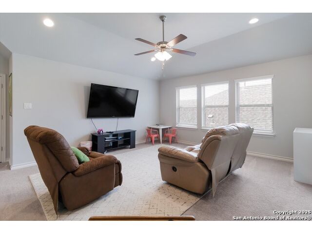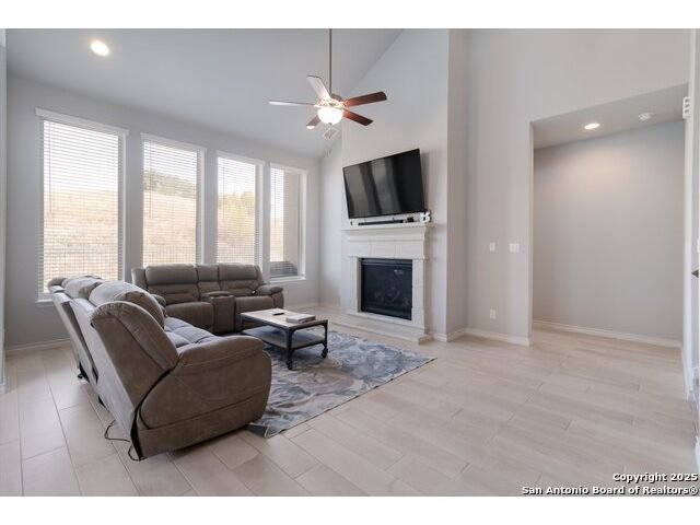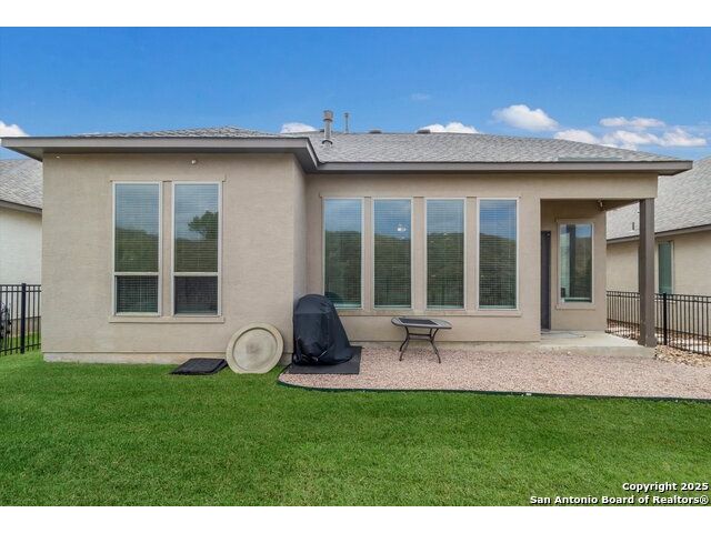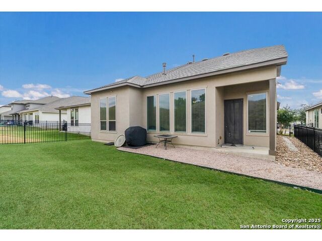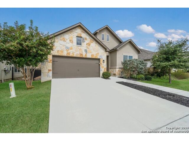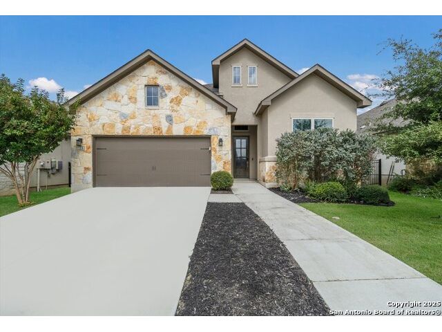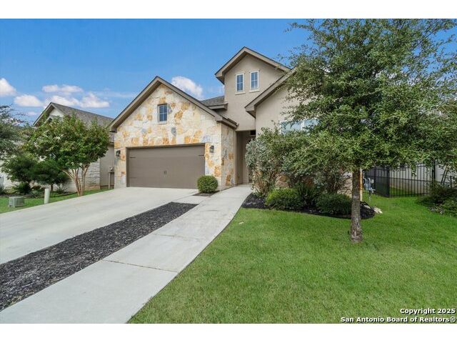 This stunning two-story home is nestled within the highly desirable Esperanza Boerne neighborhood, offering 4 spacious bedrooms, 3 baths, and a dedicated office that can easily serve as a fifth bedroom. The thoughtfully designed layout features the primary suite, a second bedroom, and an office all conveniently located on the first level, with the kitchen, dining, and living areas providing seamless flow for everyday living. Upstairs, you'll find additional bedrooms and a spacious family room, perfect for relaxation or entertaining. Backing up to serene green space, this home provides both privacy and beautiful views. Additional highlights include plumbing for a water softener and access to an array of premium neighborhood amenities such as a clubhouse, controlled access gate, jogging trails, park and playground, sports court, and resort-style pool. Located in a gated community with a park within walking distance, this home perfectly combines comfort, style, and convenience.