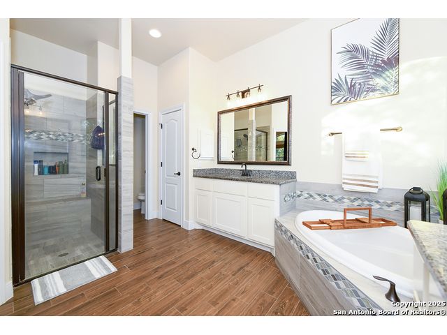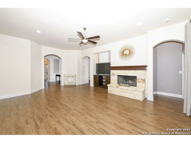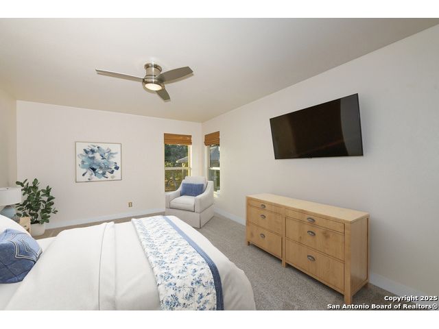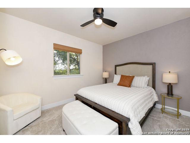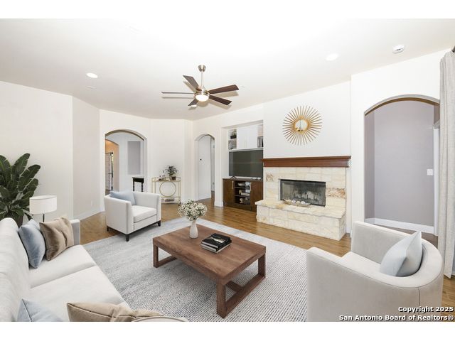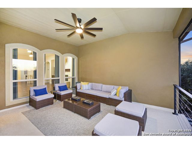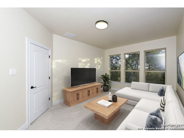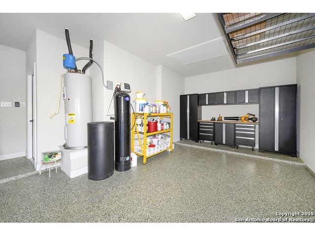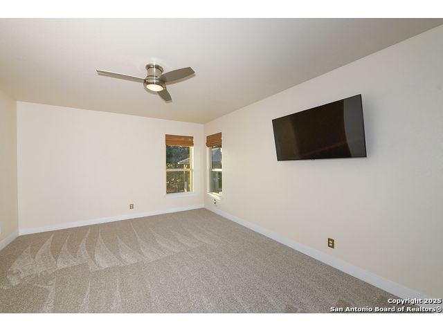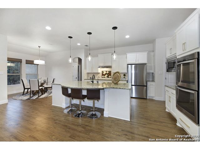 Discover the best of Hill Country living in this stunning 4-bedroom, 3.5-bath home nestled on a serene 1.01-acre cul-de-sac lot in the prestigious Vintage Oaks community. Built in 2017, this 3,038 sq. ft. residence blends timeless comfort with modern elegance, featuring newly installed carpet, upgraded modern lighting, and a flexible floor plan ideal for entertaining. This spacious interior home, includes a versatile flex room, open-concept living spaces, and a two-car garage with an extended tandem area outfitted with wall-to-wall storage cabinets and a custom workshop setup. Gorgeous mature oaks frame the property, enhancing the home's curb appeal and natural privacy. The outdoor space, offers your own private oasis, an entertainer's dream with a heated pool featuring ambient lighting, motorized drop shades, a fully equipped outdoor kitchen with lighting and mounted Bluetooth speakers, and breathtaking greenbelt views that capture the essence of Hill Country tranquility it's the ideal retreat for peaceful evenings or weekend gatherings. As a resident of Vintage Oaks, you'll have access to unmatched resort-style amenities including multiple pools with a lazy river, a beautifully designed Tuscan-style clubhouse, a state-of-the-art fitness center, sports courts, and scenic trails meandering throughout the community's rolling landscape. Experience serene luxury living with the convenience of being just minutes from downtown New Braunfels, Gruene, Canyon Lake, and major city destinations. This home offers the perfect balance of nature, sophistication, and community. Come love where you live in Vintage Oaks! **Please note that behind the cabinets, beneath the cooktop stove, the area is trimmed and configured for propane use.