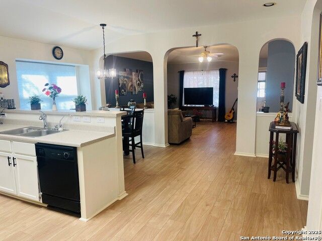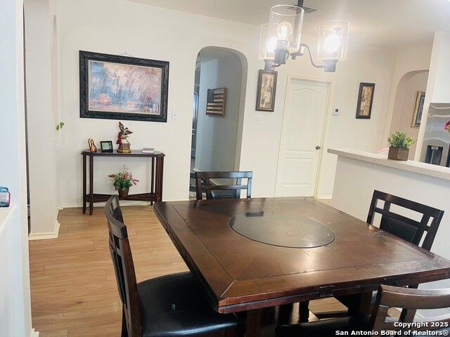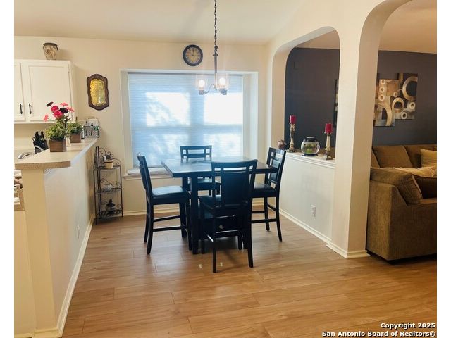 Charming Single-Story Home in Gated Sedona Community Welcome to this beautifully maintained 3-bedroom, 2-bath home in the heart of Helotes, tucked inside the desirable gated community of Sedona. From the moment you arrive, you'll fall in love with the inviting curb appeal, featuring a landscaped flower bed, accent shutters, elegant yard lighting, and a spacious columned front porch that sets the tone for what's inside. Step into a bright, open floor plan filled with natural light, high ceilings, arched doorways, and plantation shutters throughout. The spacious living and family rooms are perfect for gatherings, centered around a cozy wood-burning fireplace. With no stairs or carpet, this home is as practical as it is stylish - boasting luxury wide-plank flooring throughout. The well-appointed kitchen is designed for both everyday living and entertaining, featuring an abundance of cabinetry and counter space, a stainless steel sink, reverse osmosis system, breakfast bar, and a massive walk-in pantry and laundry room. Retreat to the grand primary suite, complete with a dual vanity, oversized walk-in shower, and generous walk-in closet. French doors lead directly to your private backyard oasis, where an expansive 36' x 27' deck and 21' x 18' covered patio create the ultimate space for outdoor entertaining, weekend BBQs, or relaxing evenings under the stars. Enjoy the benefits of a vibrant community with amenities including a park, playground, basketball court, and covered picnic pavilion. Conveniently located near shopping, dining, parks, and the highly sought-after O'Connor High School. This is more than just a house-it's the perfect place to make a home. Furniture is living room is negotiable. ITEMS CONVEYING: Garage Refrigerator, Main dining room table & Curio Cabinet. "Buyers are encouraged to verify all measurements and school information. Please refer to the additional documents for Offer Instructions and the Seller's Disclosure. We hope you enjoy your showing!"