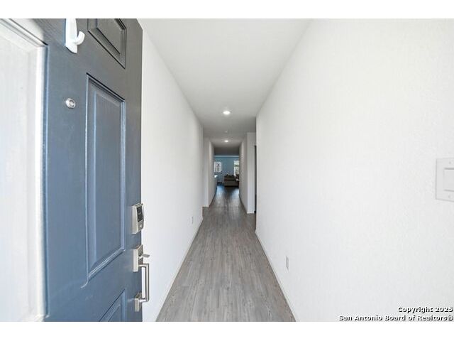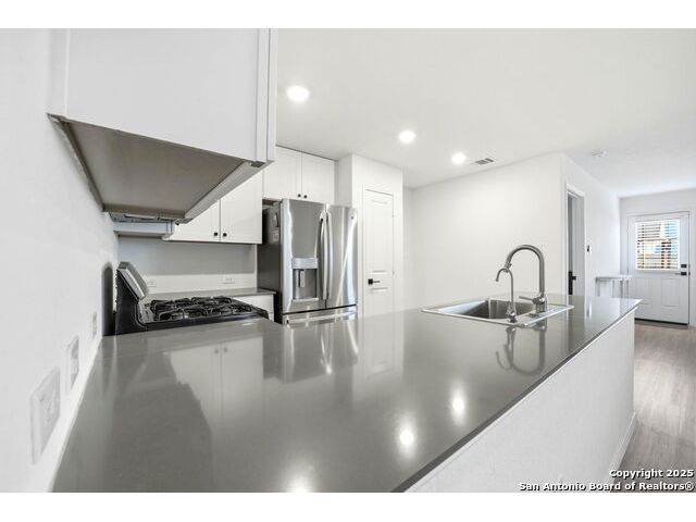 Step inside this bright and airy 4 bedroom, 2 bath home with an open layout perfect for family living and entertaining. 1,667 sq ft of thoughtfully designed space featuring beautiful grey granite countertops, updated hardware and ss appliances. Large windows fill every room bringing in tons of natural light. 3 guest bedrooms & guest bath located at the front of the home. Primary bedroom located off the living room with tub/shower combo, and a spacious walk in closet. Step into the backyard and enjoy unexpected views of the gorgeous hill country hills to your right. Large backyard with endless possibilities to create the space of your dreams! Located in a highly sought after family friendly neighborhood with walking trails, two parks for the kids, catch and release pond, amentity center, basketball court and much more. Highly rated school district and lower tax rate for Comal County not far from San Antonio!
