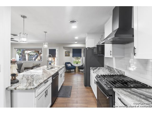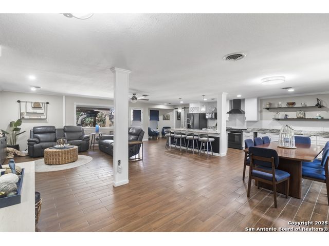 Back on Market with a brand-new septic and irrigation system! This allows for peace of mind that major issues will not occur with this beautifully updated Hollywood Park single-story Gem. This home offers a total of 4 bedrooms and 3 1/2 bathrooms. It empowers modern updates beginning upon entry highlighted by the designer kitchen with top-of-the-line granite, showcase shelving, recent appliances, and custom cabinets. Enjoy the large master suite with a spa-like bath featuring a walk-in shower and separate luxury tub. Dual masters within the split floor plan offer multiple layout options and allows those working from home to separate from the main living area for privacy. An open concept between the kitchen, breakfast area, dining and family room. Enjoy the Fall evenings under the lighted and cooled erected gazebo while enjoying the mature trees shading most of the yard. It is ready for you to make it your home just before the Holidays! --