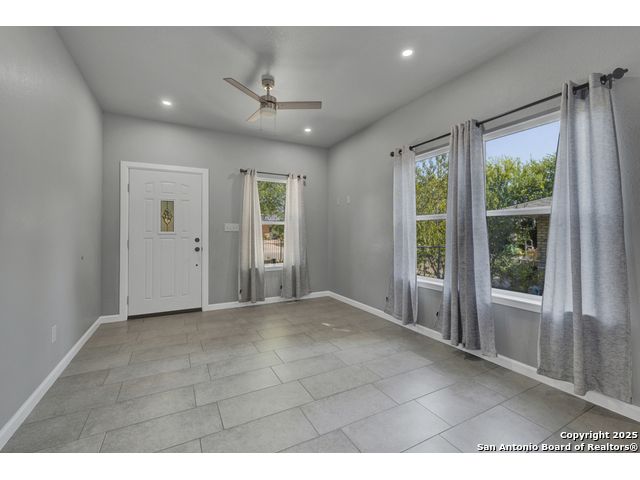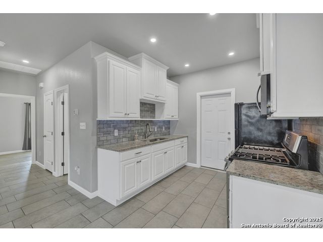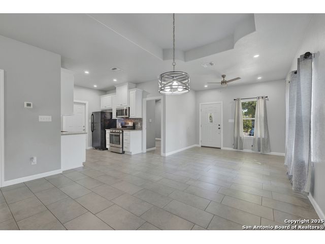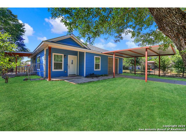 Welcome home to 5170 Village Green, ideally situated just east of IH-35 on San Antonio's Northside. Built in 2020, this home blends the comfort of modern design with the charm of an established neighborhood. Step inside and you'll immediately notice the open concept layout and high ceilings that make the space feel bright and inviting. The dining area features elegant built in cabinetry with glass doors and a tray ceiling, ideal for everyday meals and special gatherings. The kitchen is thoughtfully designed for both form and function, complete with a stainless steel gas range, microwave, and a deep single basin sink. Under cabinet lighting highlights the granite countertops and stylish backsplash, setting just the right mood whether you're cooking dinner or hosting friends. When it's time to unwind, you'll love retreating to the spacious bedrooms, each offering a cozy escape. The primary suite includes a full bathroom and two separate closets perfect for extra storage or your growing shoe collection! Built with efficiency in mind, this home features spray foam insulation, an insulated garage with its own A/C vents, and even an insulated garage door, making it easy to convert into a fourth bedroom, gym, or creative space. The double carport still gives you shaded parking for two vehicles. Whether you're looking for your first home or your forever home, 5170 Village Green delivers comfort, flexibility, and a place where you'll feel at home.