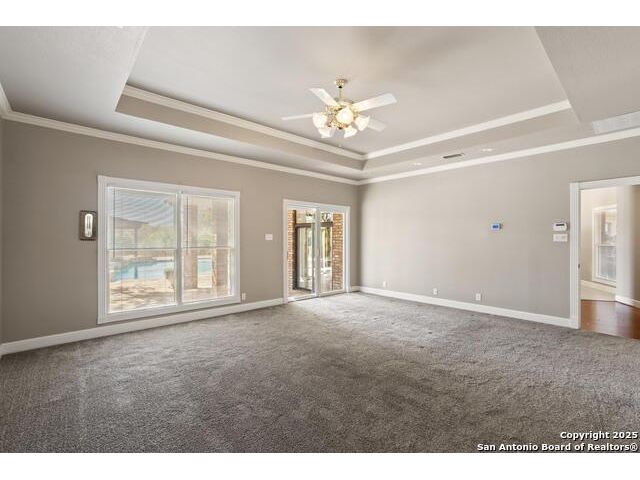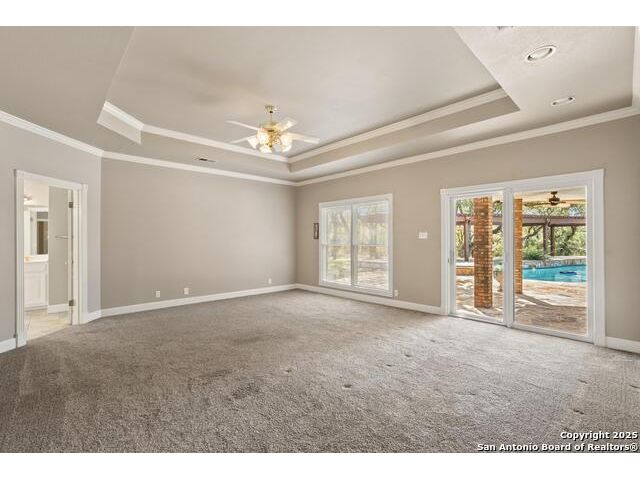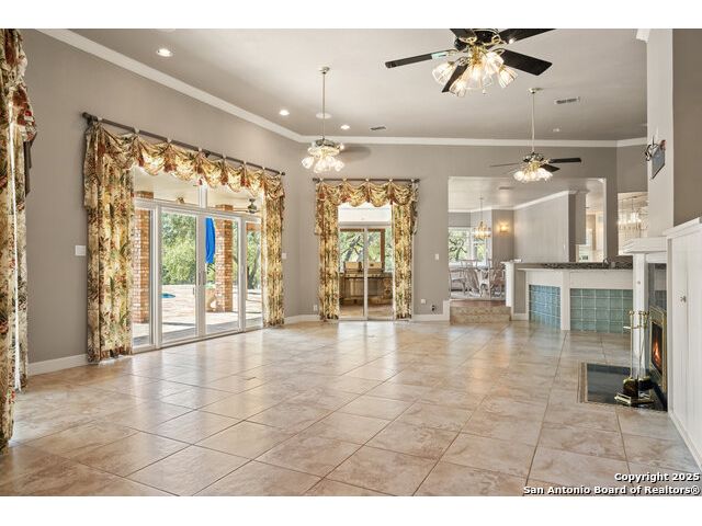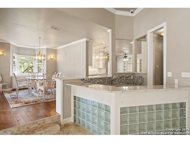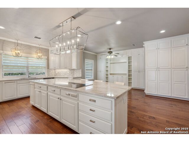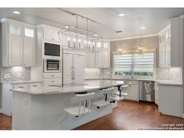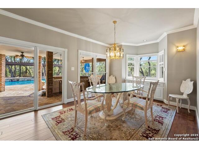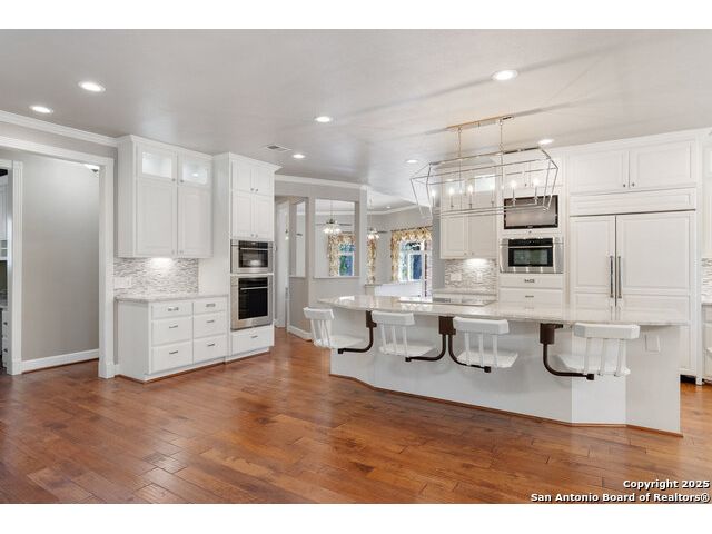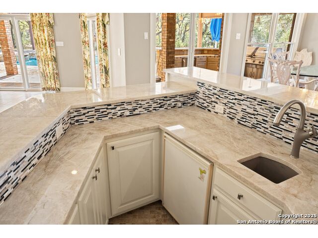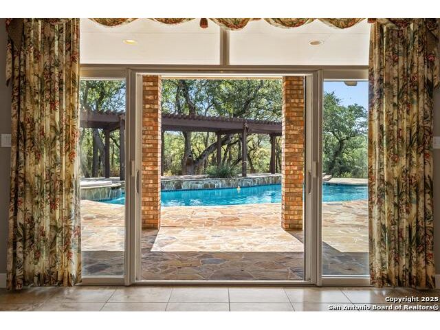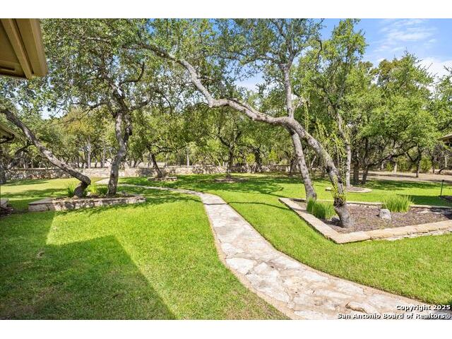 Tucked away on 5 acres surrounded by mature trees and native Hill Country beauty, this 2018-remodeled retreat perfectly balances everyday comfort with resort-style outdoor living. With a recently installed roof (Aug. 2025) and neighborhood access to the Guadalupe River for fishing, kayaking, and floating, it's designed for those who live life outdoors. Spend your days soaking in the pool's spa and splash pad, relaxing beneath the pergola, or firing up the grill in the fully equipped outdoor kitchen-every corner invites you to slow down and savor the moment. As evening falls, gather under twinkling lights while the sounds of nature set the tone. Inside, light fills an open layout designed for connection. The kitchen shines with quartz counters, built-in WOLF appliances, a Sub-Zero fridge, dual ovens and dishwashers, and a large island that draws everyone together. A formal dining room and wet bar make entertaining effortless, while the expansive living area flows through sliding doors onto the covered patio-creating a seamless indoor-outdoor experience. The owner's suite offers a peaceful escape with poolside access, dual vanities, a spa-inspired shower, and two walk-in closets. A generous guest suite with en suite bath, plus an additional bedroom and a private office nook, ensure everyone has a space to unwind. Just minutes from the Guadalupe River and historic Gruene, this property embodies Hill Country living-laid-back luxury and adventure rolled into one.