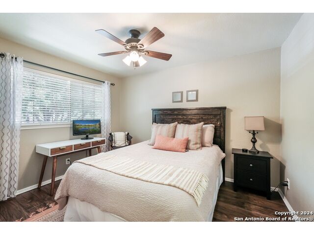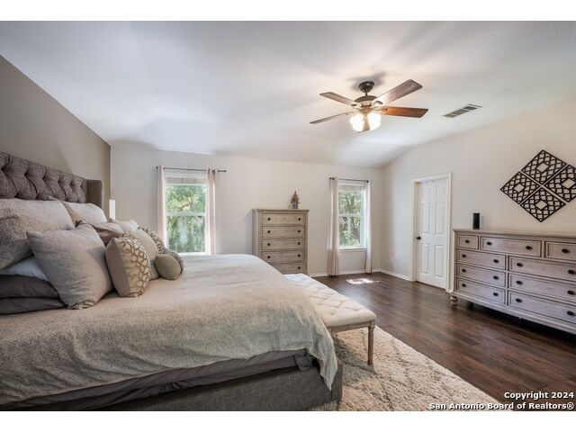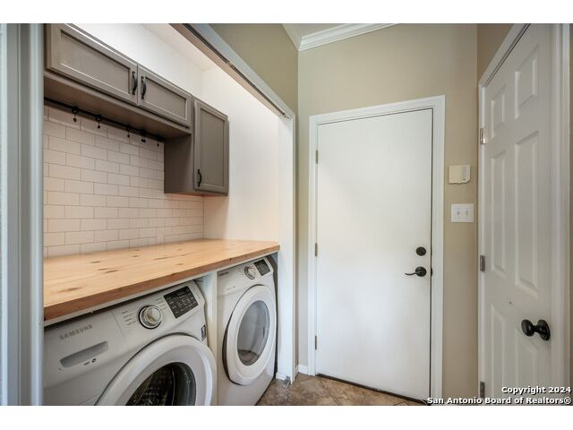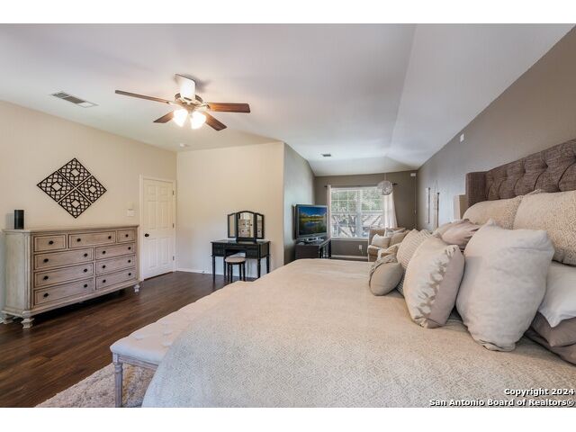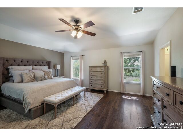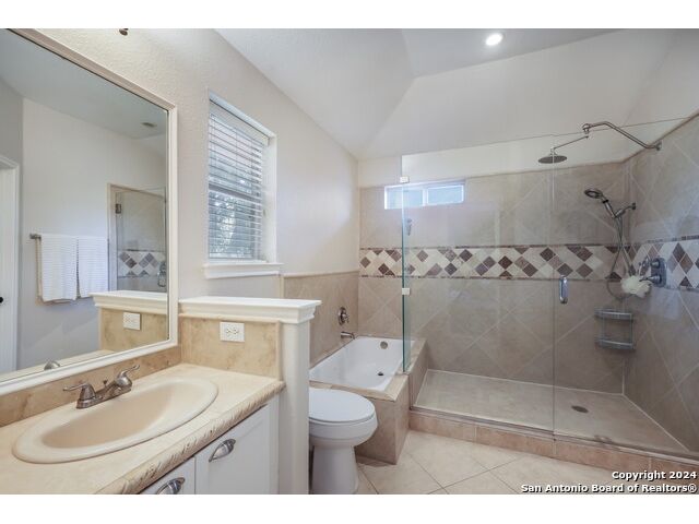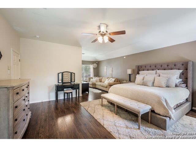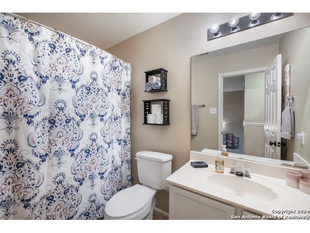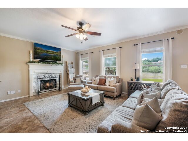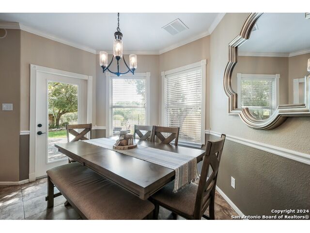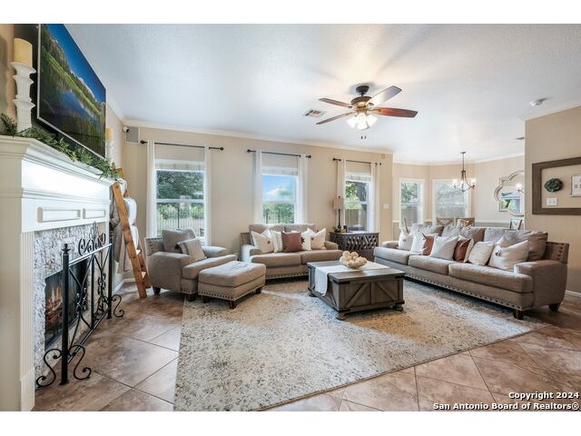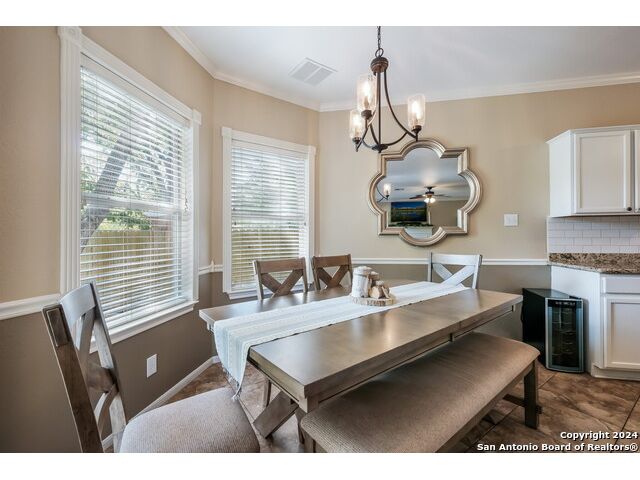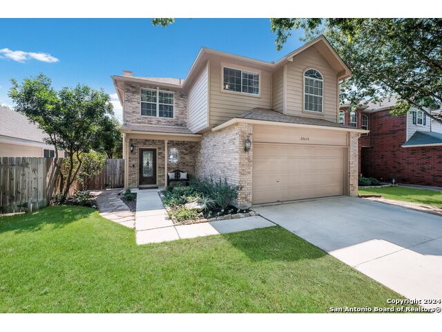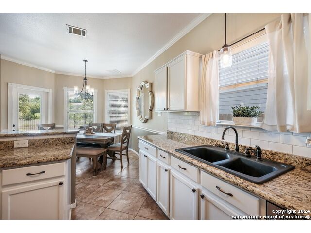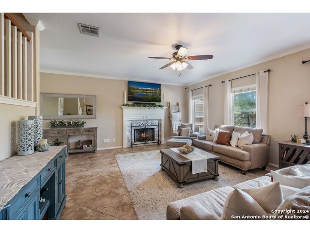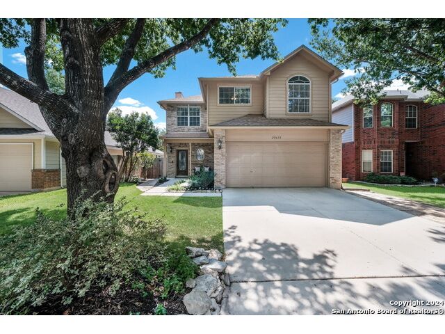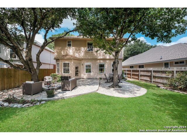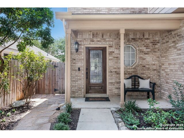 Updated move in ready home in sought after Stone Oak area. Beautiful tile floors and crown molding down, laminate wood floors up. Granite counter tops with an open floor plan great for entertaining. Master bedroom has a great sitting room. The huge patterned concrete patio w/fire pit is shaded by huge trees and is on a beautiful greenbelt lot.