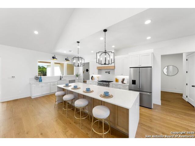 1 year rate buydown at no cost with preferred lender New by Pillar Homes - Experience Hill Country elegance in this new stunning modern farmhouse located in the growing community of Cielo Rio Ranch in Pipe Creek, TX. Sitting on almost 3 acres of land, this is a 4 bed, 3.5 bath, + office home that blends luxury craftsmanship with everyday comfort. Step through the double front doors into a bright, open living space featuring vaulted ceilings, hardwood floors, and a wood-burning fireplace, thoughtfully designed with custom details throughout. The gourmet kitchen includes quartz countertops, custom hood, huge eat-in island, and gas cooking - and the extended butlers pantry provides an additional prep and cook space - great for both entertaining and family gatherings. Seamlessly transition outdoors through the oversized patio slider to a private outdoor space equipped with an outdoor kitchen, perfect for enjoying the hill country's beautiful evenings. This property truly captures the charm of country living with modern luxury - don't miss your chance to call this retreat your own.