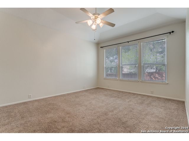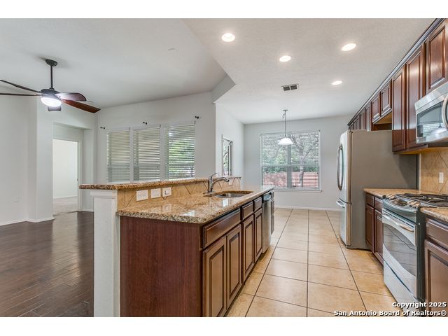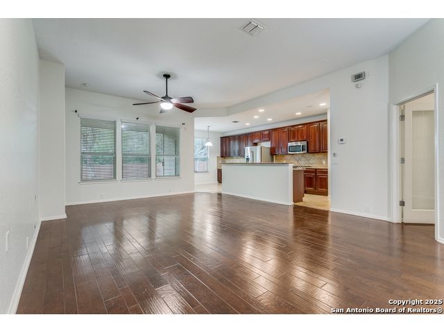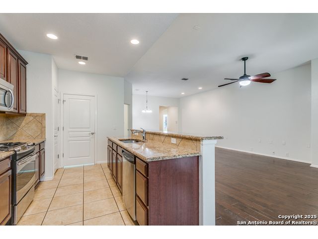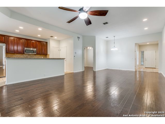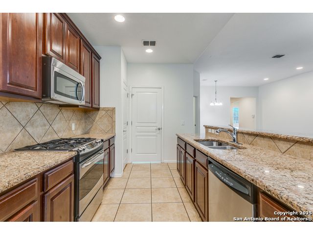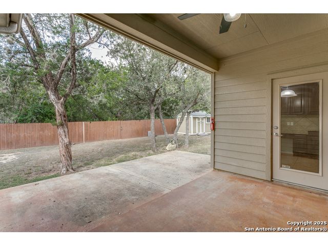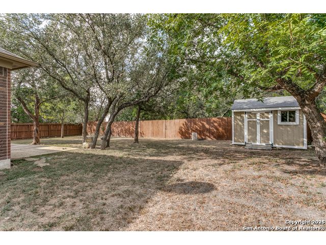 Located in a desirable cul-de-sac, this well-maintained 3-bedroom, 2-bath home offers an open and inviting floor plan with granite countertops, stainless steel appliances, and abundant natural light. The spacious backyard backs to a greenbelt and includes a storage shed, full privacy fence, and water softener. Fresh interior paint throughout makes this home move-in ready and ideal for comfortable living in one of San Antonio's most sought-after communities.