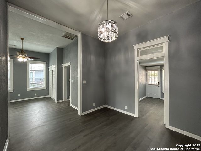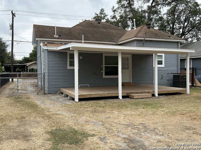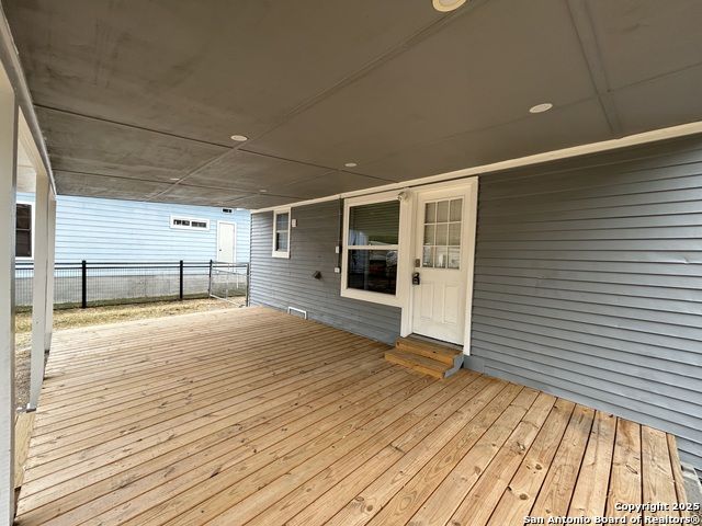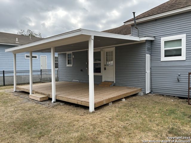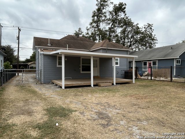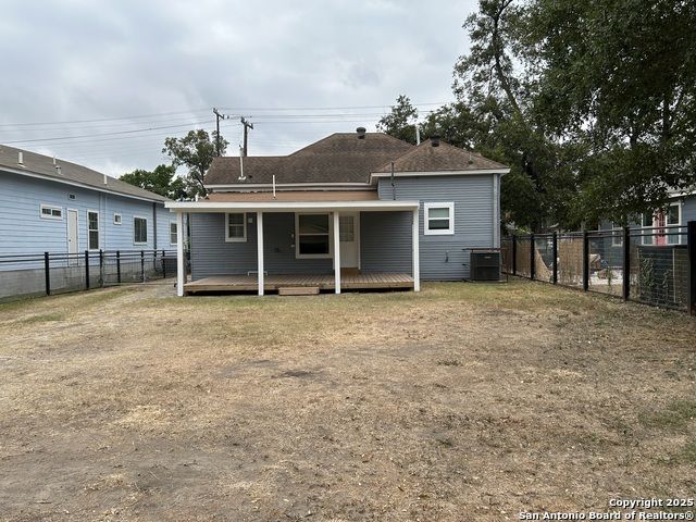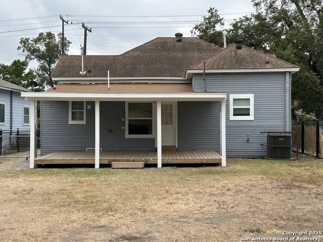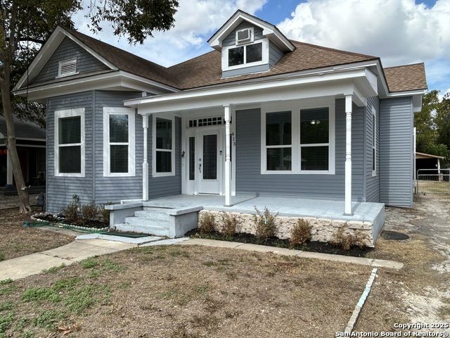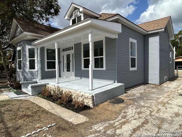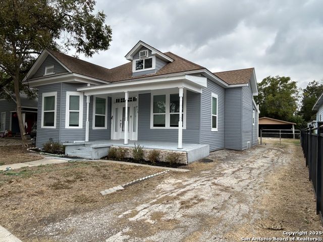 Too NICE! This Absolutely Delightful Craftsman home is located in the Lone Star District of Downtown San Antonio, right in the heart of the vibrant Entertainment Hipster Area. It's in excellent condition with recent appliances, new luxury vinyl plank flooring, and fresh interior and exterior paint. The stylish trim, moldings, and glass doors bring a Retro Decor vibe that's full of character. The stunning island kitchen features gas stove cooking, a stainless microwave, Stainless refrigerator, Stainless dishwasher, and original glass doors on the classic cabinets. The primary bedroom offers a dressing room and a spacious bathroom with both a tub and a tiled stall shower. Central air and heating add to the comfort. A stylish spiral staircase leads to a third bedroom or flex office space. The timeless appeal of this home shines through. Outside, enjoy a large wooden deck and a spacious backyard surrounded by elegant wrought iron fencing sporting a Detached Two Car Garage. Move in ready.