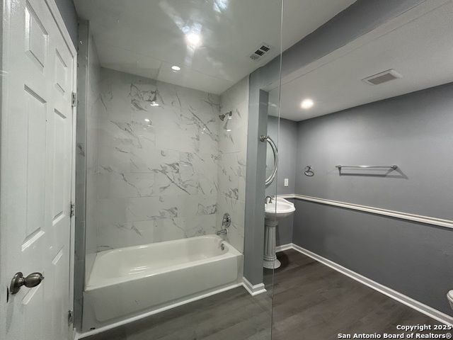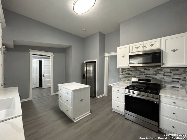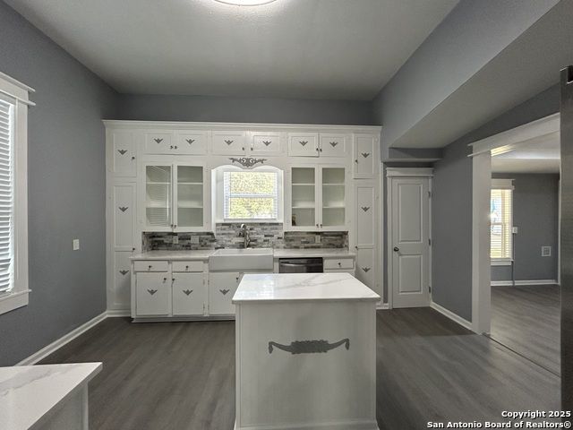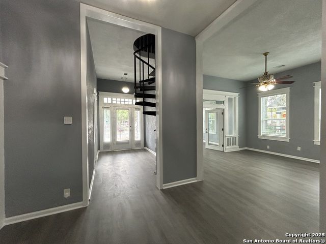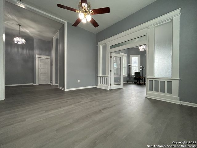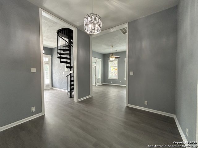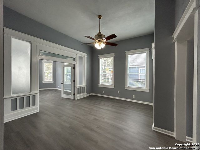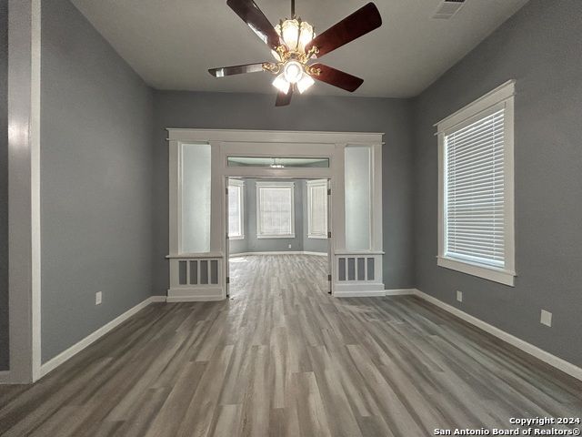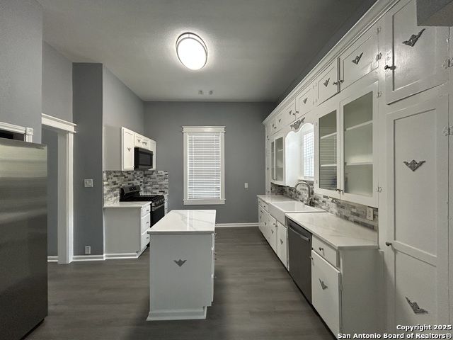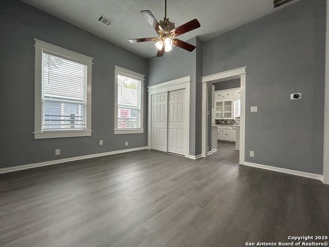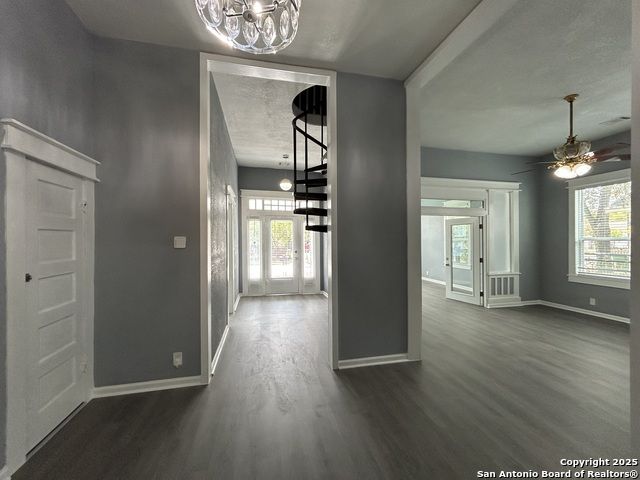 Too NICE! This Absolutely Delightful Craftsman home is located in the Lone Star District of Downtown San Antonio, right in the heart of the vibrant Entertainment Hipster Area. It's in excellent condition with recent appliances, new luxury vinyl plank flooring, and fresh interior and exterior paint. The stylish trim, moldings, and glass doors bring a Retro Decor vibe that's full of character. The stunning island kitchen features gas stove cooking, a stainless microwave, Stainless refrigerator, Stainless dishwasher, and original glass doors on the classic cabinets. The primary bedroom offers a dressing room and a spacious bathroom with both a tub and a tiled stall shower. Central air and heating add to the comfort. A stylish spiral staircase leads to a third bedroom or flex office space. The timeless appeal of this home shines through. Outside, enjoy a large wooden deck and a spacious backyard surrounded by elegant wrought iron fencing sporting a Detached Two Car Garage. Move in ready.