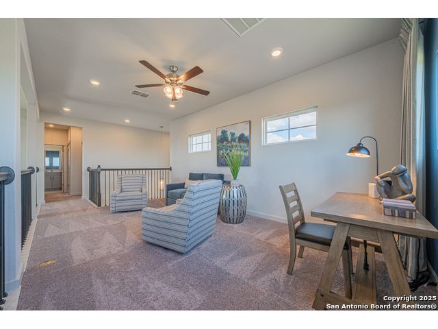 Up to $10,000 in seller contribution! Terms and Conditions apply. Under Construction, Move-In December 2025. See Sales Rep for details! Stunning 4-Bedroom Home with Premium Finishes and Advanced Structural Integrity. Experience luxury and durability in this spacious 2,668 sq. ft. home featuring 4 bedrooms, 3.5 bathrooms, and a dedicated study. The open-concept design boasts a gourmet kitchen with 42" upper cabinets, a large island, and a covered back patio-perfect for entertaining. Interior highlights include decorator color selections, satin nickel hardware, chrome plumbing fixtures, tile flooring throughout the main living areas, tile in the bathrooms, and plush carpeting in the bedrooms. Built with the advanced Huber ZIP System, this home offers superior structural strength and moisture protection. The integrated air and water-resistive barrier enhances energy efficiency and provides a tighter building envelope, reducing air leakage and protecting insulation R-values. Combined with radiant barrier roof decking, which blocks up to 97% of radiant heat transfer, homeowners can enjoy lower cooling costs and increased comfort. Additional features include a two-car garage with an oversized 8' "Texas Sized" door and a zoned Carrier HVAC system equipped with a media air filter and mechanical fresh air intake. Don't miss the opportunity to own this exceptional home that combines luxury living with cutting-edge building technology.