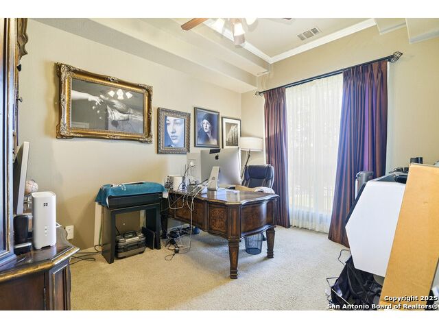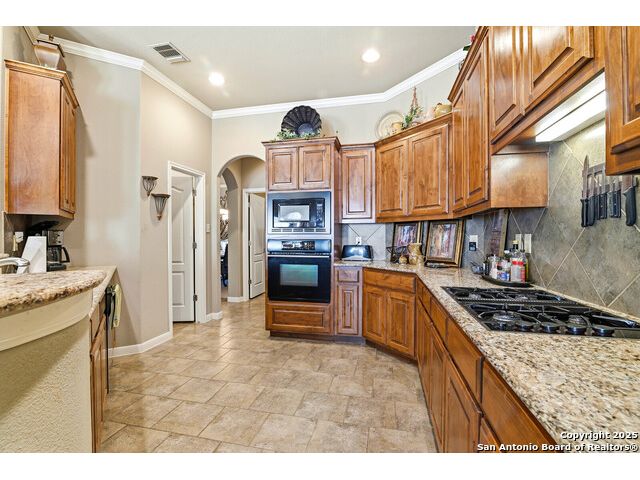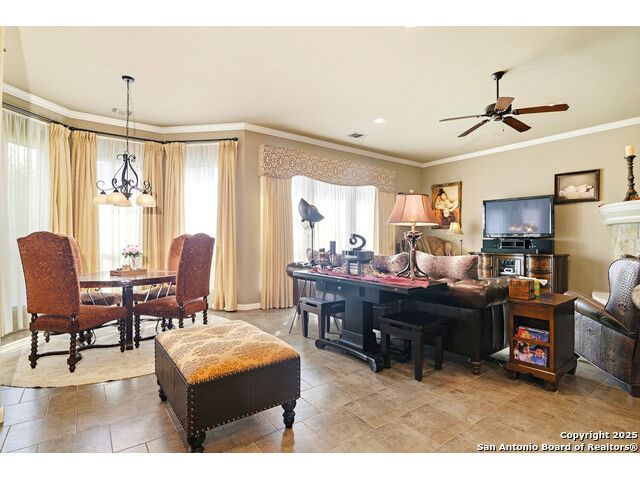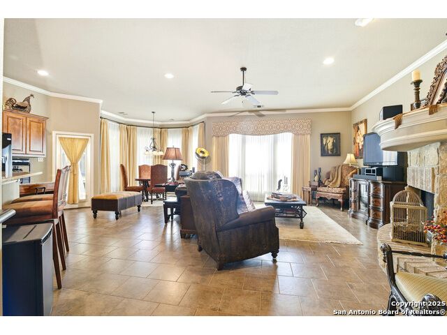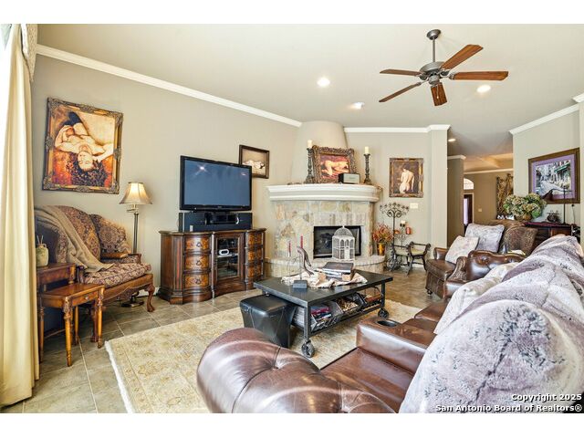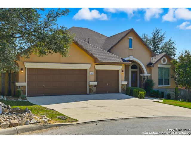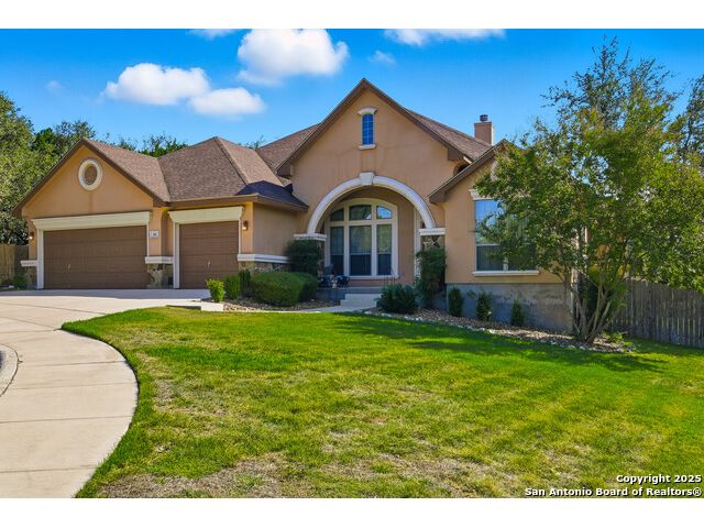 Charming One-Story Home in Gated North Central San Antonio Community Beautifully situated on a quiet cul-de-sac, this single-story original owner home offers comfort, privacy, and style in a desirable gated neighborhood. The open-concept floor plan features a spacious great room with a cozy corner fireplace, a bright breakfast nook, lower pullout kitchen cabinets, and a well-appointed kitchen with a breakfast bar-ideal for entertaining or everyday living. The primary suite includes a relaxing sitting area with a curved wall of windows, dual vanities, and a generous walk-in closet. Additional highlights include a 3-car garage and a private 0.25-acre lot with mature trees and a large covered patio-perfect for outdoor gatherings. Conveniently located in North Central San Antonio, close to shopping, dining, and excellent schools. HVAC system 2 months old. Plumbed for a water softener
