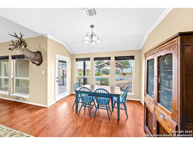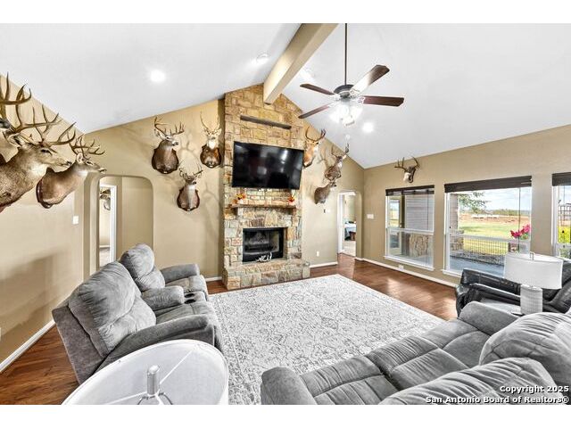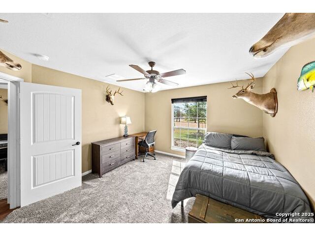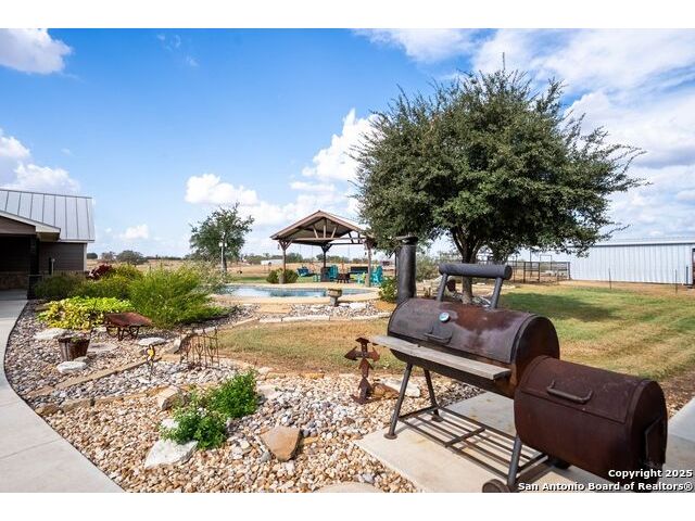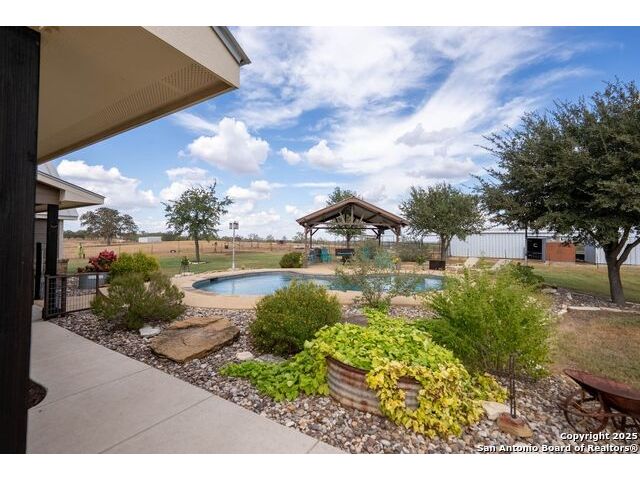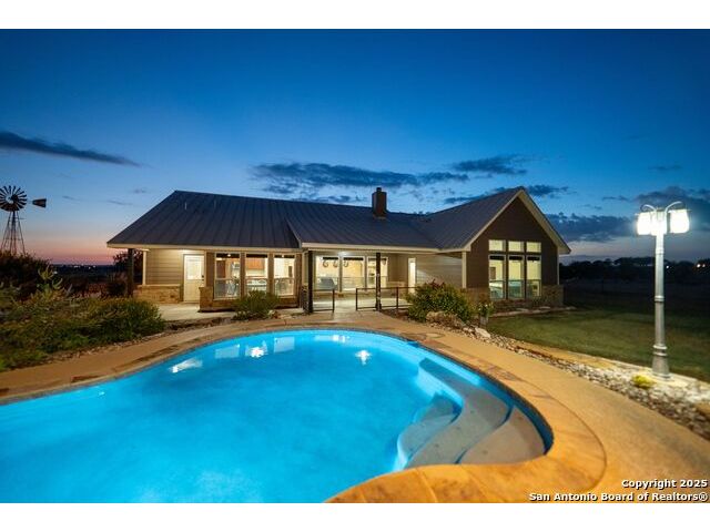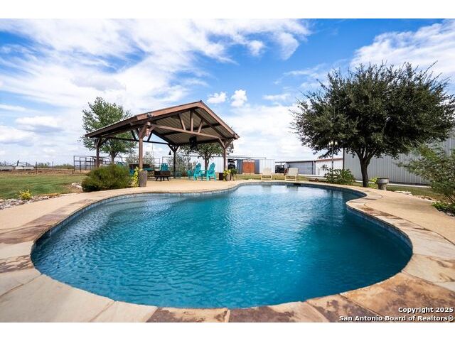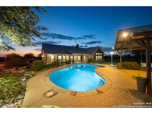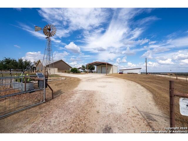 Nestled on 20 picturesque acres, this charming one-story ranch home offers the perfect blend of comfort, functionality, and serene country living. The residence features three spacious bedrooms and two and a half baths, including a generous master suite with a private bath. Inside, you'll find an inviting entryway that opens to a bright living room, a well-appointed kitchen, dining area, and a large utility room-all designed for practical and comfortable living. The property is fully equipped for ranch life with covered cattle pens, an air-conditioned feed room, a barn, and a spacious workshop complete with an attached carport. The home operates on co-op water, while the pool and livestock facilities are supported by a private well. With Ag Exemption status, no city taxes, beautiful country views, and space for horses and hunting, this property offers the ideal Texas lifestyle-peaceful, private, and purposefully designed for both relaxation and productivity.