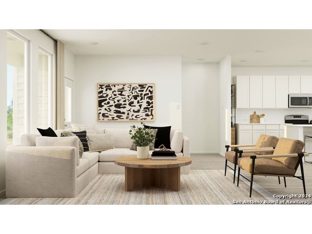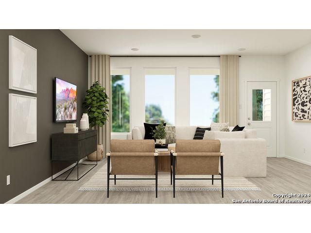The Navarre- This new single-level home boasts a modern and low-maintenance design. Three secondary bedrooms are located off the foyer, with a nearby study perfect for focusing on important tasks throughout the week. An inviting open-concept living area combines the kitchen, living and dining areas, with a nearby covered patio ready for outdoor entertainment and leisure. A lavish owner's suite completes the home, offering direct access to an en-suite bathroom and generous walk-in closet. Prices and features may vary and are subject to change. Photos are for illustrative purposes only.