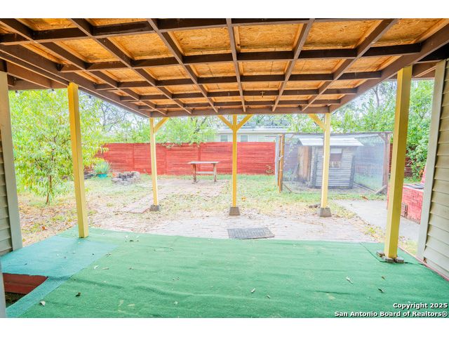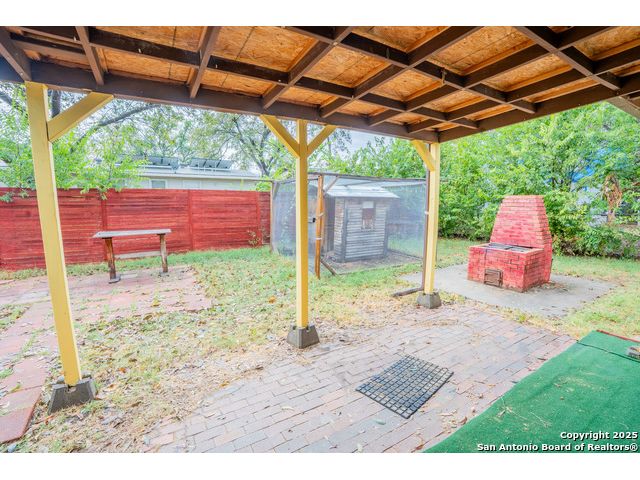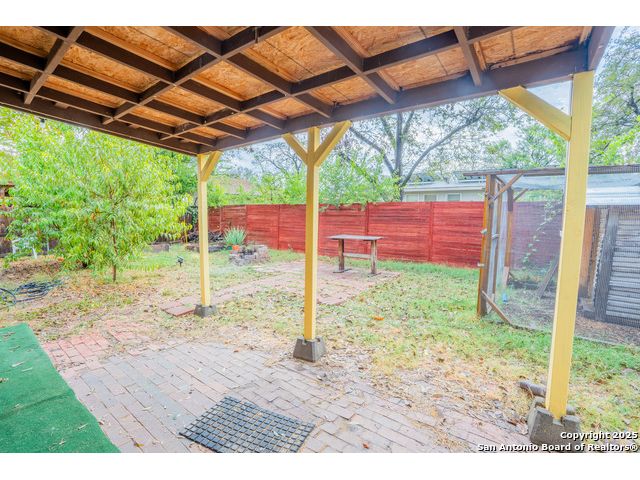 Charming 4-bedroom, 2-bath home offering 1,855 sq. ft. of comfortable living space with timeless character. Built in 1955, this property features original wood flooring throughout, built-in shelving, and two spacious living areas that provide flexibility for entertaining or everyday living. The dining area opens to a covered back patio overlooking a large yard complete with a chicken coop - perfect for those who enjoy outdoor living or hobby farming. A wood-burning stove adds warmth and rustic charm, complemented by a durable 5-year-old metal roof. Washer, dryer, and refrigerator convey with the sale. Conveniently located near Loop 410 with easy access to major streets, shopping, and dining.