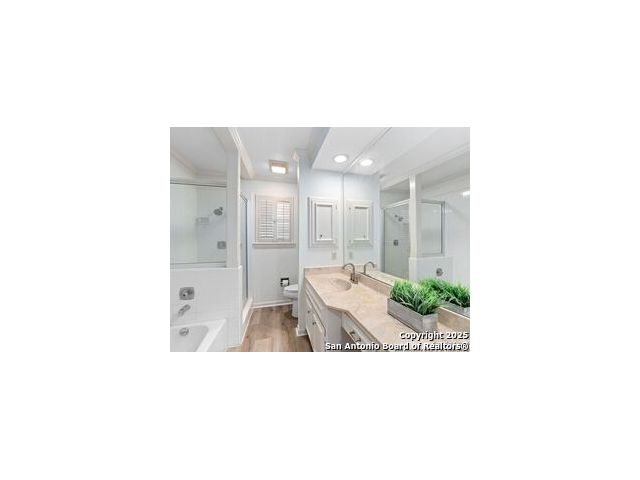 Welcome to this beautifully updated 2-bed-2 bath condo featuring timeless elegance and modern convenience. Highlights include a living/dining combo with a fireplace, plantation shutters, elegant crown molding, high ceilings and a wet bar, perfect for entertaining. The large eat-in kitchen provides ample space for dining and meal prep, while the new refrigerator and stackable washer/dryer conveys for your convenience. The spacious primary suite offers a walk-in closet and luxurious bath with separate tub and shower. The second bedroom features custom built-in bookcases, ideal for storage or a home office. Enjoy outdoor living on the large covered balcony. Community amenities include a sparkling pool and a covered parking space. Situated in a prime location close to shopping, dining and entertainment. Recently painted, new flooring, new appliances, updated faucets, cabinet and door hardware, electrical plugs, ceiling fans and lighting. Don't miss this opportunity.