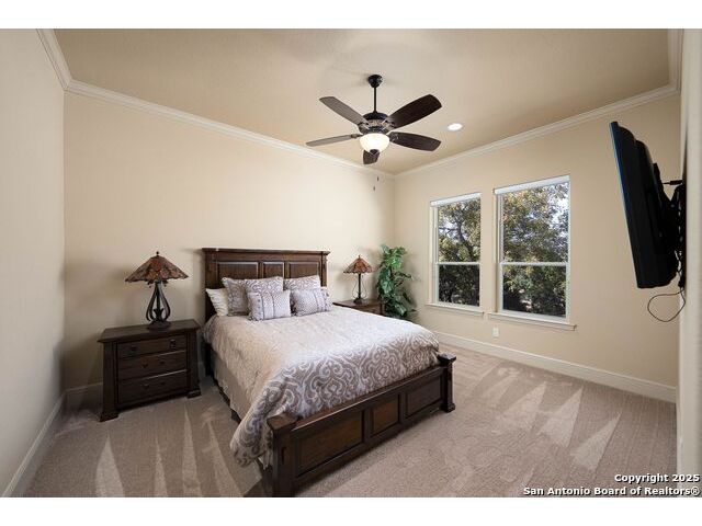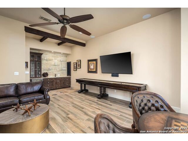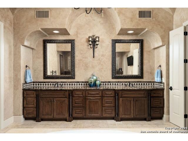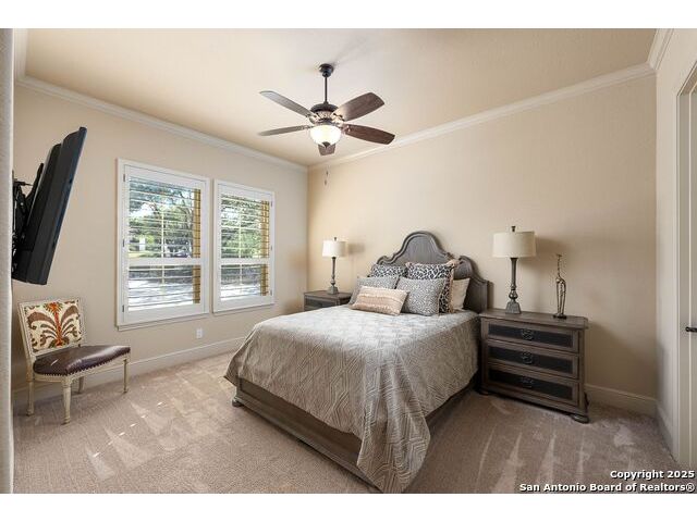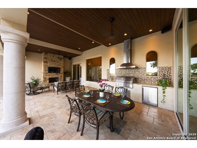 Discover panoramic views of the Texas Hill Country and experience masterful craftsmanship in this single-story luxury residence, thoughtfully built by Trinity Custom Builders. Located in the prestigious, gated community of Menger Springs, this estate lot offers the perfect balance of privacy and convenience-just 5 minutes from Boerne's charming Hill Country Mile & easy access to I-10, The Shops at La Cantera, The Rim, Medical Center, and more. Inside, you'll find a spacious, beautifully designed layout featuring high-end finishes, an impressive gourmet kitchen with a dream pantry, expansive windows that bring the outdoors in, and four private ensuite bedrooms. At the heart of the home lies an entertainer's dream: a custom-designed infinity edge pool and spa with a waterfall, grotto, and dramatic gas fire bowls. Multiple outdoor patios, covered lounges, and a built-in chef's kitchen create the ultimate backyard retreat-perfect for both quiet relaxation and unforgettable gatherings. This home also offers views and access to the Menger Springs private 5 acre lake. Families will also appreciate access to the A-rated Boerne ISD school district. Don't miss the virtual tour video for more details.