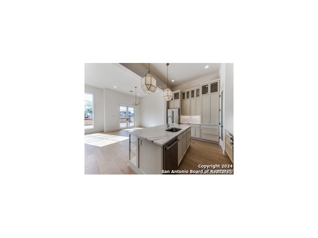 This brand new townhome is at the heart of Olmos Park. Situated within walking distance to shops, restaurants, and all the amenities that Olmos Park has to offer. This perfectly located home is under 10 minutes to downtown San Antonio, the Pearl, San Antonio's Museums, and the Airport. The transitional design includes floor to ceiling windows and elevated finishes throughout, including white oak hardwood floors, a master fireplace, ample storage, marble countertops, and stainless steel appliances. The