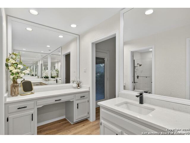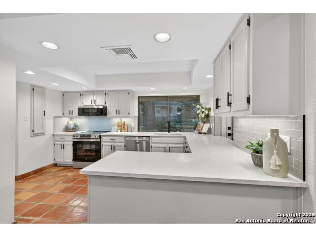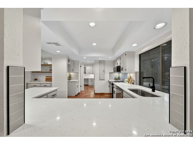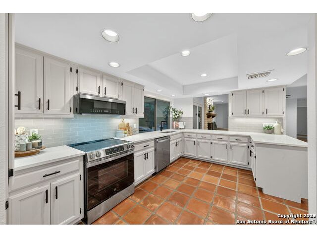 Open House this Saturday 11/8 and Sunday 11/9 1-3pm!!!! This stunning, fully renovated home in desirable Encino Park is truly one of a kind, offering space, style, and sophistication at every turn. With 4 bedrooms and 3.5 baths, including two primary suites-one upstairs and one downstairs-it's perfect for multi-generational living or hosting guests in comfort. The heart of the home is a stunning peninsula kitchen featuring quartz countertops, new stainless appliances, and seamless flow into the family room, where a fireplace serves as the warm centerpiece. Enjoy entertaining in the formal dining room with a built-in china cabinet, or unwind in the formal living area. The breakfast nook includes a built-in bar, and the spacious laundry/butler's pantry combo opens through French doors to the spectacular backyard. Step outside to your own private retreat with a waterfall feature, outdoor kitchen, hot tub, playhouse, and storage shed. The brick patio, crafted from antique bricks sourced from the Motherhouse of the Sisters of Charity of the Incarnate Word-founders of the University of the Incarnate Word-adds a touch of San Antonio history to your outdoor oasis. Located in highly rated NEISD schools, this home offers luxury, history, and charm-too many incredible features to list!
