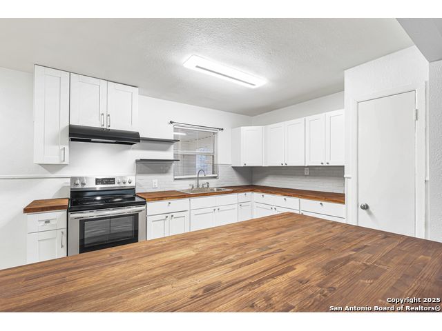This beautifully updated 3-bedroom, 1-bath home offers a warm and inviting open-concept layout. The remodeled kitchen features stylish new cabinets, stainless steel appliances, and a spacious breakfast bar with gorgeous wood countertops-ideal for casual dining and entertaining. Recent updates within the last two years include a new HVAC system, refreshed bathroom, newer vinyl flooring in the kitchen and large bedroom, ceiling fans throughout, fresh interior paint, and roof replacement. Enjoy the convenience of a single-story floor plan with a one-car garage and a large, fenced backyard offering plenty of room for pets, play, or relaxing outdoors. Perfectly located near major highways, shopping, restaurants, and just minutes from downtown-this home combines comfort, convenience, and style in one affordable package. Move-in ready and full of charm-this home is a must-see!