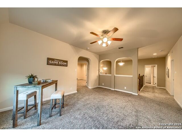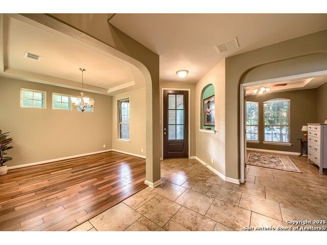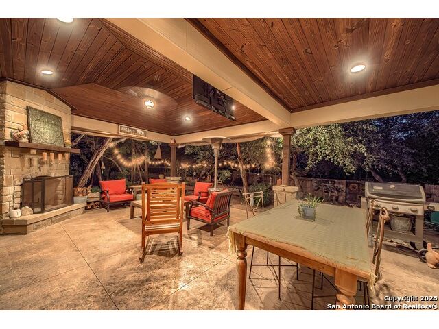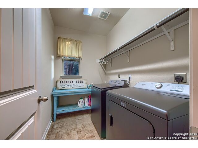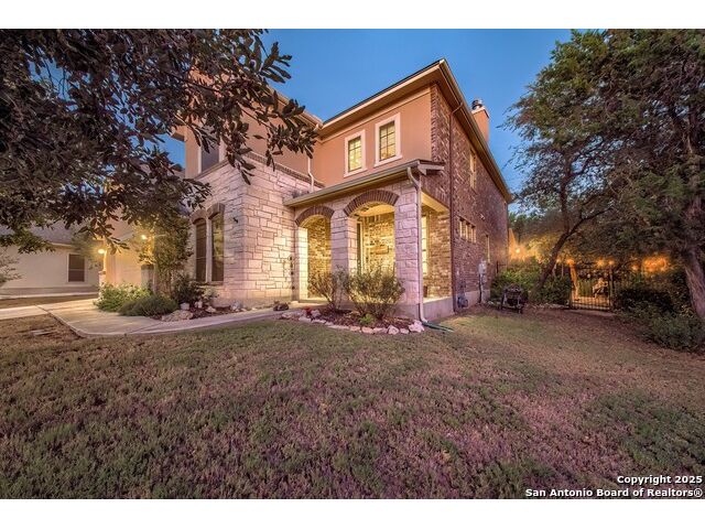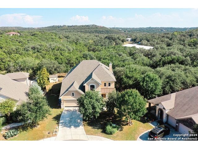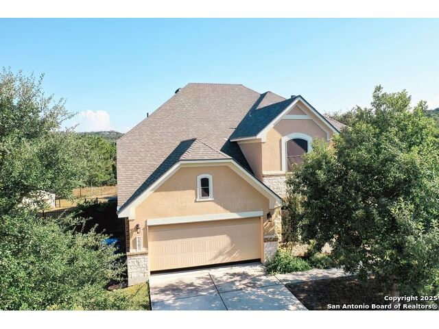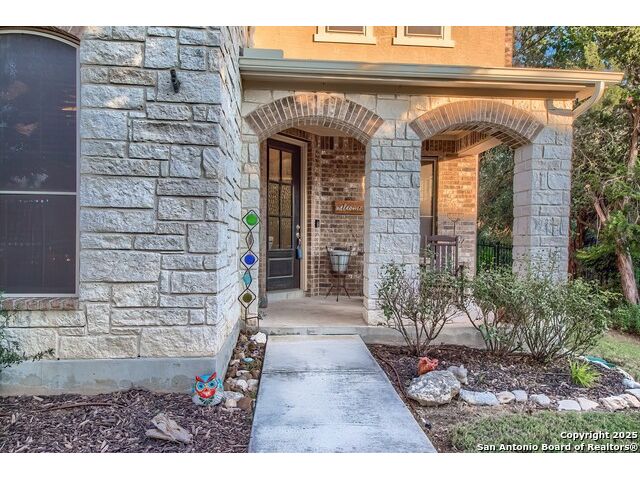 SLAM DUNK! This house has it all--no joke. Location--Yes. Hill Country Helotes where you can hear the famed musicians at Floore Country Store from your backyard and see the rugged limestone hills on your way home. Extra large yard size--Yes. How about nearly 1/3 acre that backs to dedicated green space so you never have more than deer as your back neighbor. Floor Plan--Yes. This one puts some million dollar homes to shame. Condition--Yes. One owner, feels like a model and so meticulously maintained that it even has a 2024 roof! Enter the gates of Triana, one of the most sought after subdivisions in all of NW San Antonio and enjoy the classy presentation including the extensive amenities center with pool, park and pavilion. Pass an anchor elementary school, through wide streets and sweep into the driveway of this privately placed stucco/rock/br two-story home. The front porch greets you but don't linger long because inside beckons with so many surprises. The high ceiling foyer is a start, with the wood floor dining room to the right and a gorgeous, cozy office to the left with its dark sage walls making focusing on work especially easy. A vintner's nook behind a beautifully decorative wrought iron door is a high class touch for connoisseurs, just one of many in this home. Behind this is a private guest half bath and a butler pantry set back with wood & glass door cabinetry and granite counter. Now, step past the staircase to the living room with its 20 foot ceiling, fireplace and open to kitchen with a gorgeous view from banks of extra large windows of the backyard space that invites entertaining. The kitchen with its island, elevated bar top space, high-end granite and gas cooking is just a chef's dream. Add in the gleaming wood cabinetry and some glass fronts you have function and form down to an art. A large breakfast nook also overlooks the gorgeous yard and beyond. Slip through a passage with art niche to the primary bedroom with rich wood flooring, a bay window, coffered ceiling and ensuite bath. The bathroom itself is so well designed you might overlook the upgrades....high end granite on the separate vanities for space and privacy. Garden tub with natural light through rainglass window and walk in shower with beautiful tile surround. The HUGE closet is a treat! Upstairs find amazing space with tons of natural light ... a generous loft to use as second living or gameroom! A media/movie room is set off here along with double doors and a bathroom with walk-in shower right across with custom tile with glass tile accents. One secondary bedroom sits here ... even the smallest but still spacious. Go down a hall and find the other two bedrooms, both extra large for secondaries, with nice closets and connected in jack-and-jill style. This bathroom is so well designed, stop to be impressed. It has a dual vanity, medicine cabinet, natural light from two windows, the toilet separated by a half wall and a tub/shower combo set back in an open concept. Now pop back downstairs, peek in the three car garage with tandem set up and then outside where the party really happens. This owner added an extended covered entertaining space with rock fireplace with a barbeque space set off as to not interfere with conversation. The yard embodies the Hill Country with a mix of xeriscaping, mood lighting and view through wrought iron fence of the wildlife and green space behind you. Two storage sheds offer practicality out of sight, separate fencing for the pets if you need it. There is even a dedicated space for a dog wash. The owner has repainted and installed new carpet --you won't believe this home is not brand new. All this in coveted Helotes, with NISD Schools, 3 minutes from Floore Country store and historic downtown Helotes, easy access from 1604 to so many places including 5 minutes to grocery, down 151 to downtown San Antonio, 10 minutes to amazing shopping at La Cantera Mall and even only 20 minutes to Stone Oak & the airport. Run Here!
