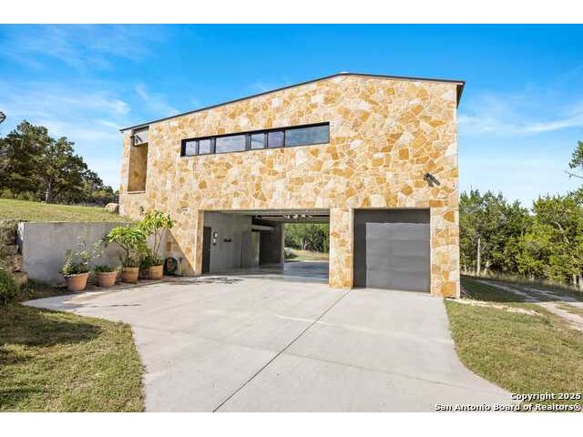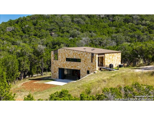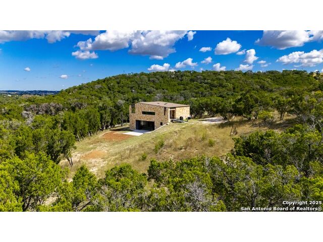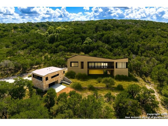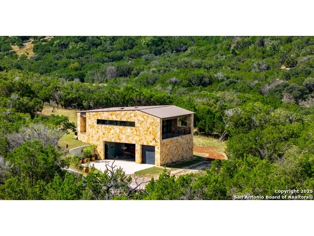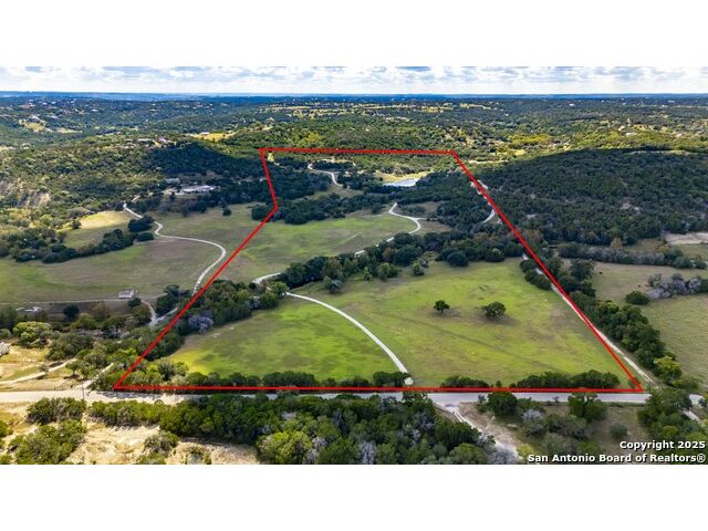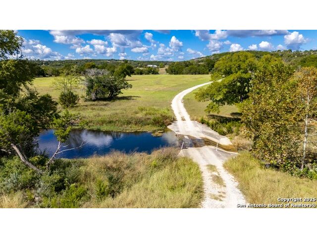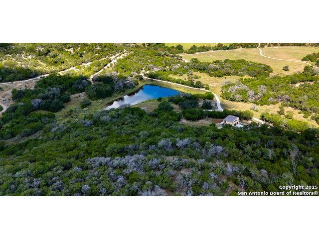Bear Creek Ag-Exempt Hill Country Retreat | Hunting Permitted | Creek Frontage | Improved Pastures | Custom Home Plans! This extraordinary 59-acre ag-exempt estate offers over 1,000 feet of Bear Creek frontage on both sides located just minutes from Kerrville. Improved pastures produce up to 90 round bales of hay annually, blending productivity w/natural beauty. The existing 1,230 sq ft ICF (Insulated Concrete Forms) residence offers superior energy efficiency & strength, featuring 2 bd, 2 ba & expansive deck w/panoramic views. The insulated three-bay garage, w/dual pass-through bays, includes a full bath, laundry, & storage. This Turnkey infrastructure includes a private well, pump house, 5,500-gal storage tank, aerobic septic, propane, & gravel roads. In addition, A prime hilltop homesite adjacent to the current residence is cleared & ready w/architectural plans for a 4,261 sq ft ranch home w/585 sq ft covered decking. Abundant wildlife includes Axis, Whitetail, & Turkey. Graced by Live Oak, Red Oak, Sycamore, Cypress, & Cedar, creates a truly scenic & serene setting. Perfectly positioned for comfort & convenience, close to medical facilities, fine dining & all amenities.