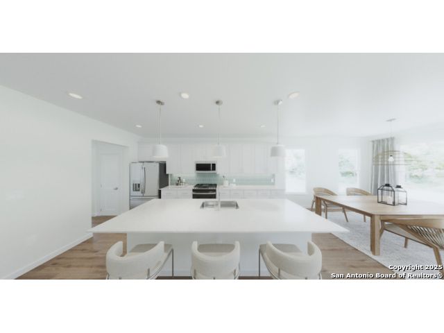 Step into this thoughtfully designed two-story home where comfort, style, and everyday functionality come together seamlessly. Natural light fills the open-concept layout, highlighting the gourmet kitchen, breakfast area, and spacious family room. The kitchen serves as the heart of the home, featuring a large center island for casual dining or entertaining, a walk-in pantry for ample storage, and designer finishes that make every meal enjoyable, from weekday breakfasts to holiday gatherings. A flexible space at the front of the home provides the ideal spot for a formal dining room, sitting area, or home office, while a secondary bedroom with a full bathroom offers a comfortable guest suite. Upstairs, a generous loft connects three secondary bedrooms that share a well-appointed bathroom, creating plenty of space for a growing family. The primary suite is a private retreat with thoughtful details and comfort, located alongside the upstairs utility room for added convenience. Outside, a covered patio offers the perfect setting for relaxing or entertaining while enjoying views of the backyard. Every aspect of this home is designed to balance style, functionality, and comfort, providing a welcoming environment for family life, entertaining guests, and everyday living. With its versatile layout and elegant finishes, this home supports every part of your lifestyle while creating spaces for both connection and privacy. This home is part of our Coastal Collection-bringing a breezy, light-filled vibe inspired by shorelines and sunny escapes. Think soft linen and sea glass tones, airy textures, and open spaces that feel effortlessly relaxed. It's the sensation of a fresh ocean breeze, even miles from the water, and the kind of space that makes every day feel like a getaway. Whether you're hosting a sun-soaked brunch or unwinding after a long day, the Coastal Collection delivers a timeless, vacation-at-home atmosphere. This home is located in Nopal Valley, a welcoming community in West San Antonio. Spacious homesites offer room for outdoor living, and the neighborhood will feature a pool, pavilion, and playground for family fun and relaxation. Inside, the home is thoughtfully designed with open layouts perfect for entertaining or enjoying quiet moments. With convenient access to shopping, dining, Medina Valley ISD schools, and Lackland Air Force Base, it combines modern comfort and functional design in an ideal location.