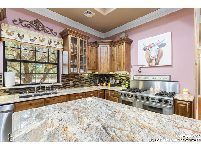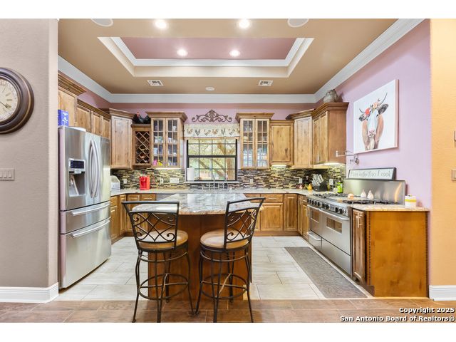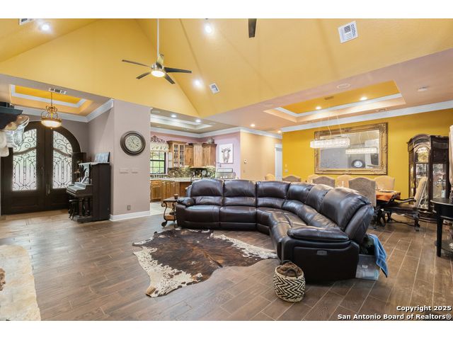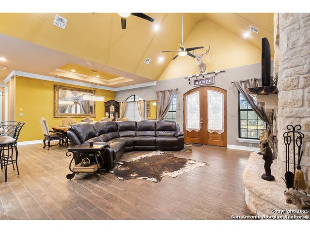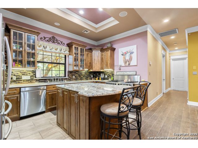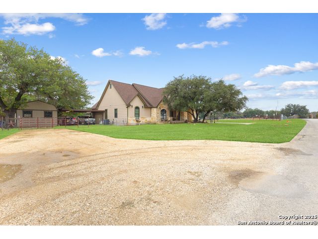 Residential property with Commercial Opportunity - 168 Bandera Blvd/Hwy 173 N. Bandera. Introducing a very unique blend of real estate as a full time residence and/or residence with a commercial business accessing/fronting Hwy 173 N. Located on the East side of the 1.83 Acres gallantly stands a beautiful 4 Bedroom, 5 1/2 bath, 2850 sqft custom home. Quality & craftmanship is evident when you enter this energy efficient home. 12' vaulted ceilings greet you as it shares the stage with the Texas size limestone fireplace in the large spacious living room. Dinning area has tray ceilings, recessed lighting w/chandelier lighting to match. If you love to cook this kitchen is like going on a mini vacation in itself, would accomdate the best of chefs, inset ceiling, granite countertops, custom cabinetry, Five Star commercial gas stove, pot filler, dishwasher, wine chiller, Samsung fridge, reverse osmosis topped off with crown molding. Large master suite elegantly displays comfort & privacy with its tray ceilings, crown molding & private out door access with Texas Style doors. The master bath is a paradise all its own with french doors leading into spa, large double sized shower, deep aquatic Spa bath w/jets & its own aglitter chandilier! Each additional bedroom has their own private full bathroom, along with the media room/4th bedroom. Large laundry room w/commercial grade washer & dryer convey with the home. Extras abound every where, attached 2 car garage, commercial 2 car carport, new roof, fenced, walk-in attic, water softner, elec under eves for Christmas lights, storage bldgs, large front & back yards with large majestic Oak trees. This flexible property also has the Commerical opportunity to have your own buisness, retail center, offices right on Hwy 173 N, a VERY high traffic route going to and from Bandera to Kerrville. UNLIMITED POSSIBILITIES for the visionary!
