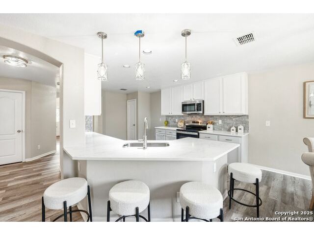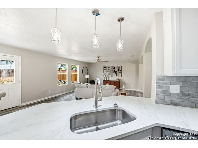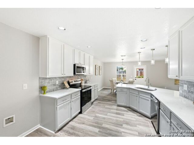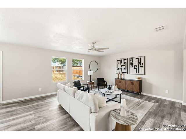 Open House 11/14/2025 from 4:00 PM to 7:00 PM || 11/15/2025 from 12:00 PM to 3:30 PM. This beautifully updated home offers the perfect blend of modern upgrades and comfortable living. Step inside and you'll find fresh paint, new flooring, and stylish finishes throughout. The spacious living area flows seamlessly into a bright kitchen featuring updated countertops, refinished cabinets, and stainless-steel appliances, perfect for everyday living and entertaining. The primary suite offers plenty of space and a private bath with updated fixtures. Secondary bedrooms are roomy and versatile for guests, work, or play. Outside, enjoy a private backyard with a covered patio, ideal for relaxing or hosting weekend barbecues. Located in a quiet neighborhood just minutes from shopping, dining, Lackland AFB, and easy highway access, this home is move-in ready and waiting for its next owner.