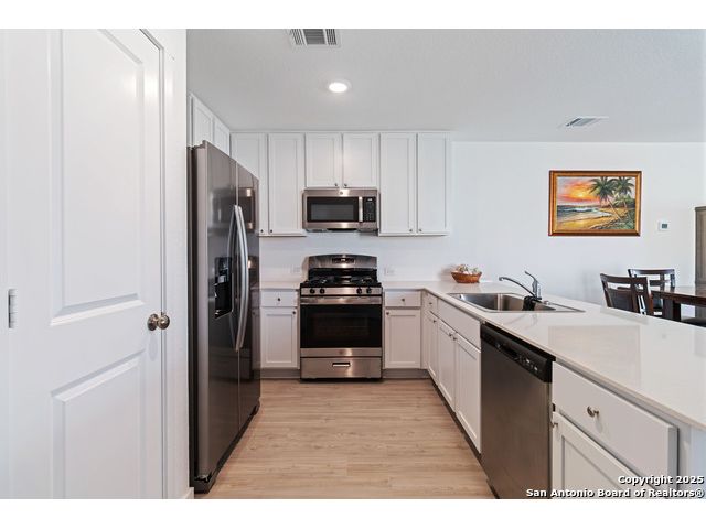 **VA Assumable Qualifying Loan!** This is an incredible opportunity you won't find in a new build - take advantage of a phenomenal rate and start saving from day one! Welcome to 14206 Enfield Falls, a beautifully maintained single-story home offering thein Brookmill perfect blend of comfort, upgrades, and privacy - all on a quiet cul-de-sac lot just shy of a 1/4 acre! This popular Kitson floorplan features 3 spacious bedrooms and 2 full bathrooms across 1,402 square feet of smart, functional living space. The garage has been fully transformed with epoxy flooring, custom wall paint, overhead storage and is perfect for those who appreciate attention to detail. The washer and dryer convey, adding even more value to this move-in-ready home. Outside, you'll love the lush front and back landscaping, plus a large storage shed painted to match the home. Relax and unwind outdoors overlooking a greenbelt with no visible neighbors, offering privacy and peaceful Hill Country vibes. Enjoy the sprawling amenity center with resort-like pool, oversized playground, clubhouse and a fitness center! Conveniently located near shopping, dining, and quick access to Loop 1604 and Hwy 90, this Brookmill gem delivers the comfort, charm, and location you've been looking for.