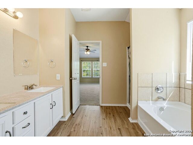 **VA ASSUMABLE AT 3.625%!**Welcome home to this spacious 2,776 sq. ft. property located on San Antonio's desirable west side! Conveniently situated just off Loop 1604, this home offers easy access to shopping, dining, and a quick 15-minute drive to and from Lackland AFB. The neighborhood pool is less than half a mile away - perfect for family fun and relaxation! Inside, you'll find two generous living spaces downstairs, providing plenty of room to gather and entertain. The kitchen features abundant cabinetry, a large island, and an inviting eat-in area. Just around the corner, you'll find a walk-in pantry larger than most and a conveniently located laundry space - designed for function and flow. Upstairs, a spacious loft offers the perfect setup for a game room, home theater, or office. All four bedrooms are located on the second floor, including the private primary suite, which boasts dual closets, a double vanity, and a separate shower and soaking tub. Step outside to your oversized covered patio, where you can relax in the shade of mature trees and enjoy your private backyard retreat. With space, functionality, and convenience, this home is perfect for a busy family seeking comfort and community.