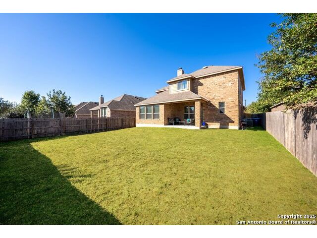 SPECIAL LENDER INCENTIVE AVAILABLE! Get 1% toward your closing costs, plus the seller will contribute additional funds with the right offer! Welcome to this outstanding open-concept Highland Home, featuring 5 bedrooms and 4.5 bathrooms - a rare find in the desirable Johnson Ranch community. Experience resort-style living with access to a 5-acre amenity park featuring a sparkling community pool, pavilions, playground, sports and basketball courts, scenic hiking and biking trails, and a clubhouse. Enjoy regular food truck events and a perfect blend of natural beauty and neighborhood charm-all right within your community. This spacious brick home offers endless possibilities for comfortable living, entertaining, and relaxation. Step inside to a formal dining room that sets the perfect tone for special occasions. The chef's kitchen boasts an expansive island, abundant counter space, and a gas cooking range, ideal for both everyday meals and gatherings. The spacious living room is centered around a cozy fireplace and enhanced by beautiful wood floors, creating a warm yet sophisticated atmosphere. Upstairs, enjoy a flexible second living area - perfect as a game room, home theater, or personal gym. Located within the highly rated Comal ISD, this home perfectly balances comfort, functionality, and style. Washer, dryer, and refrigerator are negotiable. Welcome home to Johnson Ranch - where luxury and lifestyle meet!