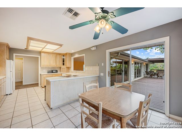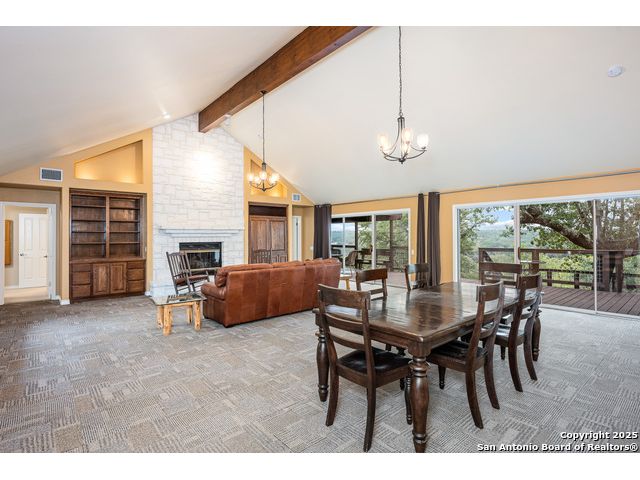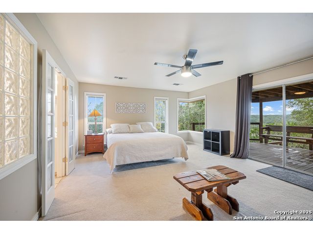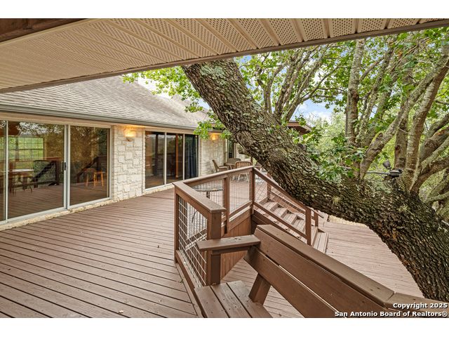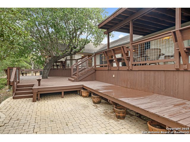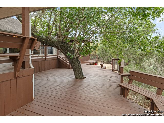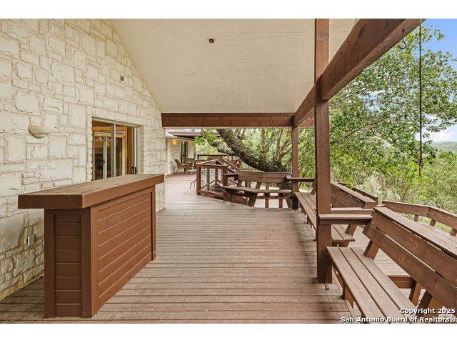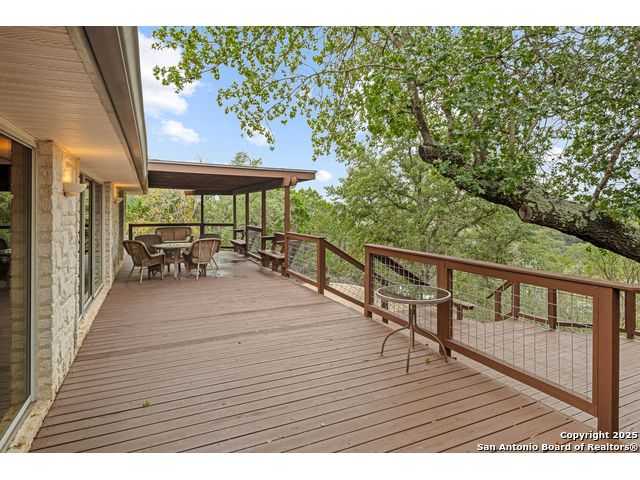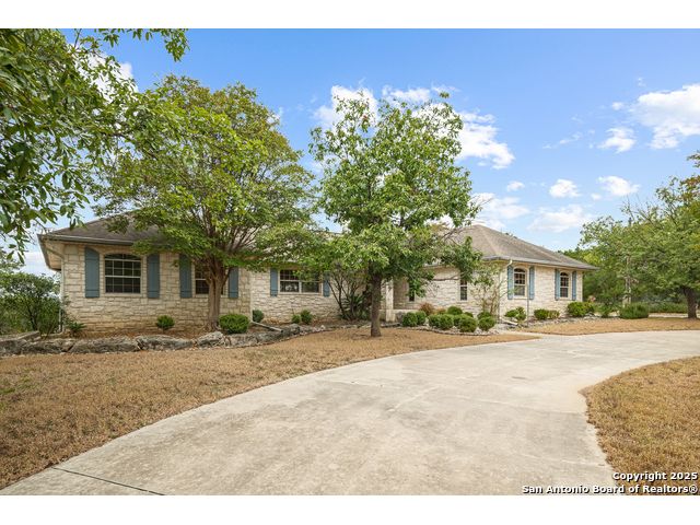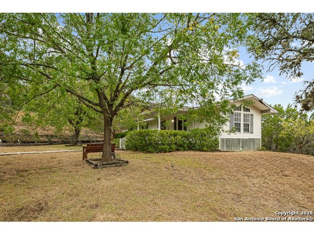Welcome to 1258 River Bluff Circle, your own slice of Texas paradise. Tucked away behind a private gate, this one-of-a-kind property offers more than 15 total acres, composed of three separate 5+ acre parcels, with strong potential for subdividing. It also features approximately 410 feet of pristine Medina River frontage-a true rarity in the Hill Country. The main home spans 2,625 square feet with 3 bedrooms and 2.5 bathrooms, built in classic Texas style with rock exterior, tall ceilings, and a cozy stone fireplace that sets the tone for the entire space. The kitchen features warm wood cabinetry and durable Corian countertops, perfectly balancing charm and function. The converted two-car garage provides a flexible space - ideal for a game room, gym, or guest area - but can easily be turned back into a garage if desired. Step outside and take in the panoramic Hill Country views from the expansive deck perfect for entertaining, unwinding, or catching those unforgettable sunsets. Primary suite with direct access to the deck offers the ultimate spot to relax after a day spent kayaking, fishing, or enjoying the river right in your backyard. A concrete driveway and electric gate ensure both convenience and privacy, while the natural beauty surrounding the property makes it feel worlds away - yet it's just a short drive from San Antonio. This is more than a home, it's a rare opportunity to own a private riverfront retreat in the heart of the Texas Hill Country.