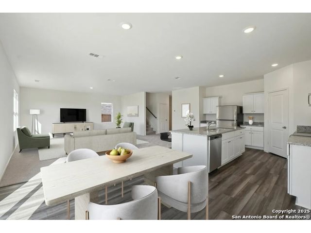 Located at the Trails of Culebra in Northwest San Antonio the community offers a resort style pool with cabana and easy access to 1604 and 151 Hwy and minutes from popular attractions. Discover the elegance and comfort of the Eclipse floor plan by Starlight Homes. This thoughtfully designed layout features 5 spacious bedrooms and 4.5 bathrooms, all on 3157 square feet. This 2 story home with an open-concept living area seamlessly blends the kitchen, dining, and living spaces, creating an inviting atmosphere for entertaining and everyday living. The gourmet kitchen boasts stainless steel appliances, ample counter space made from granite, island, and walk in pantry. The master suite offers a private retreat with a luxurious en-suite bathroom and a generous walk-in closet. Additional highlights include Flex Room on the first floor as well as the 5th bedroom and a loft on the 2nd floor for more space. The home includes a 2-car garage, energy-efficient features, and stylish finishes throughout. Experience the perfect blend of style and functionality.