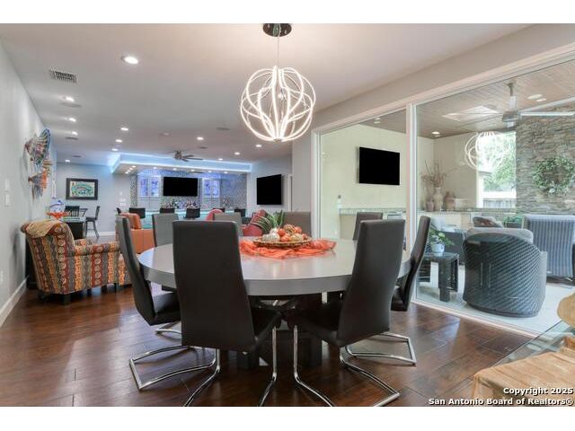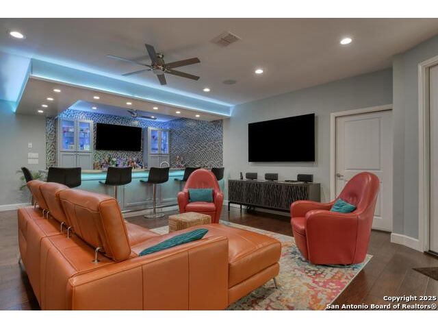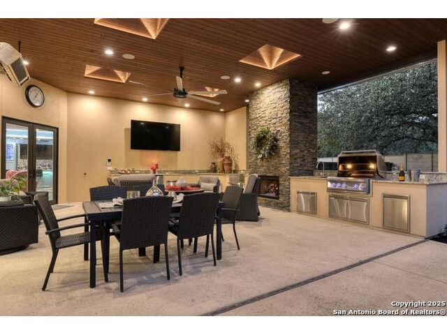 Love to entertain? This uniquely reimagined ranch-style home in desirable Hollywood Park was designed with memorable gatherings in mind. The chef's kitchen flows seamlessly into an expansive family room featuring a stunning custom bar-perfect for hosting friends and family. Step outside to discover your private resort: a spacious covered patio with a fully equipped outdoor kitchen, complemented by a beautiful plunge pool accented by dramatic fire-breathing urns. Beyond entertainment, this property offers practical luxury with a third attached garage providing additional parking for your golf cart or project vehicle, plus a large rear workshop ideal for mechanical or woodworking projects. At the end of the day retire to your tastefully designed primary suite boasting marble flooring and a steam shower in the bath and large custom closet. With its thoughtful upgrades and distinctive features, this home truly stands apart. For a complete list of special features, please see the "SPECIAL FEATURES" document under Additional Information. Schedule your showing today-this one-of-a-kind property won't last long!