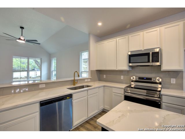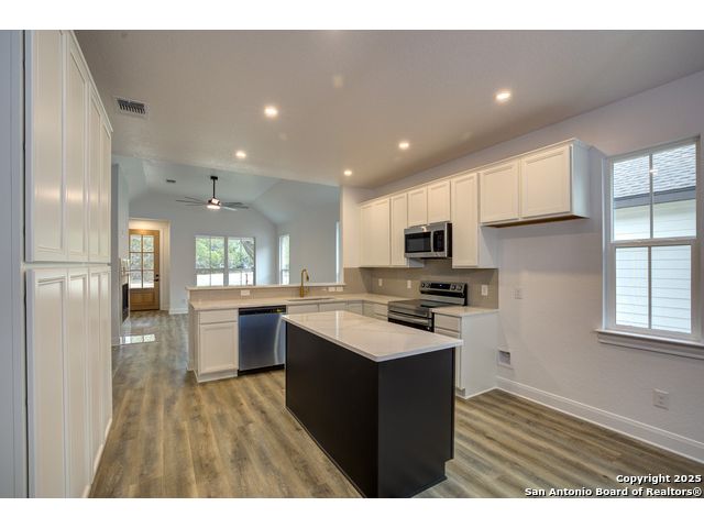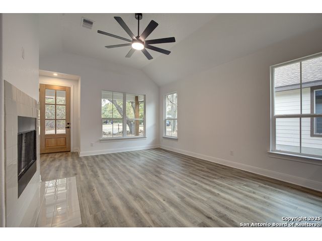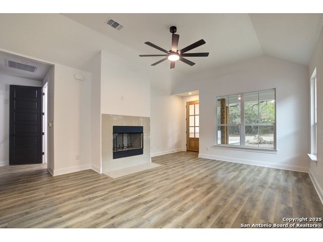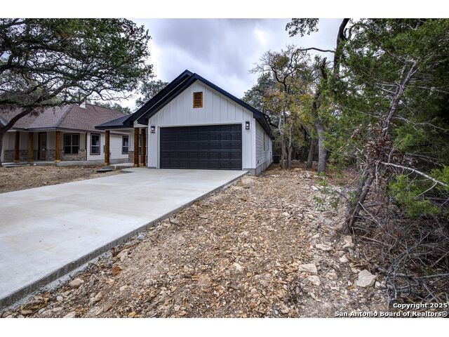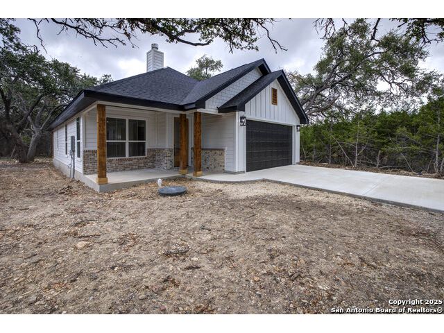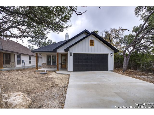 10 Sunshine Circle - a thoughtfully crafted single-story new construction home in the heart of the Texas Hill Country. Located at the end of a quiet cul-de-sac in the charming town of Wimberley, this 3-bedroom, 2-bath home offers a functional and stylish 1,509 square feet of living space. As you step inside, you'll find a warm, open layout with clean lines and timeless finishes. A cozy fireplace anchors the main living area, while granite countertops and a modern kitchen layout make both everyday living and entertaining a breeze. Large windows let in abundant natural light and showcase the natural beauty just outside your door.
