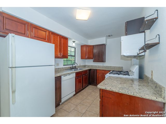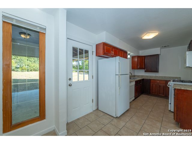 Charming 3/2 with many updates over the years. Open large living area with HW floors. Granite counters in kitchen. Spacious outdoor covered porch with high cathedral ceiling approximately 16' x 14'. Hardwood & tile floors throughout with no carpeting. Extra storage room outside.