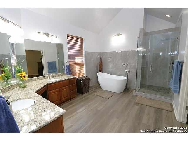 Immaculate Single Story Home in the highly desireable Gated Community in Springs at Sonoma Ranch * Beautiful Whitestone Custom Home offers extra privacy with a front courtyard entrance * Open floorplan unites foyer entry with Formal Living & Dining areas * Island Kitchen also features a Breakfast Bar area for additional seating * Kitchen Granite countertops along with Black & Stainless Steel Appliances compliment the Dark Espresso Cabinets * High Ceilings & No Carpet through out * Oversized Primary Bedroom offers extra space for a sitting area * Double Door Suite entrance welcomes you into the Primary Bathroom with a large corner double vanity * Contemporary Freestanding Tub & Custom Glass Shower * Large Primary bedroom Walk-In Closet * All Secondary Bedrooms Downstairs share Modern Custom Glass Shower hall bathroom * Covered Patio includes additional deck area to entertain friends & family * Full Sprinkler System * Community Amenity area includes Club House, Pool, Playground & Sports Courts * Minutes from Loop 1604, IH-10, the Shops at La Cantera, UTSA and Top Rated NISD Schools.