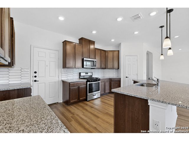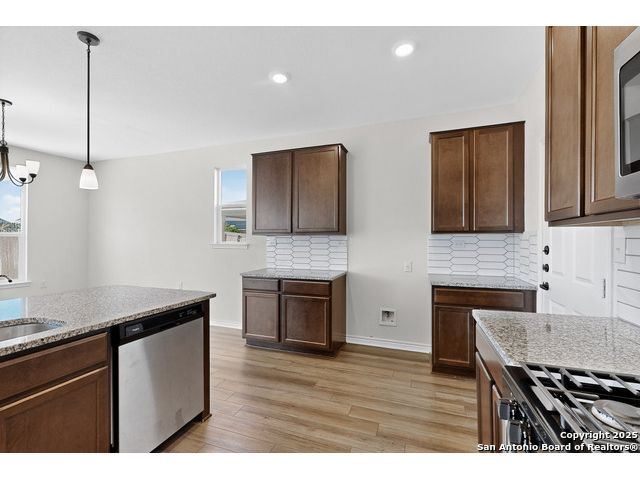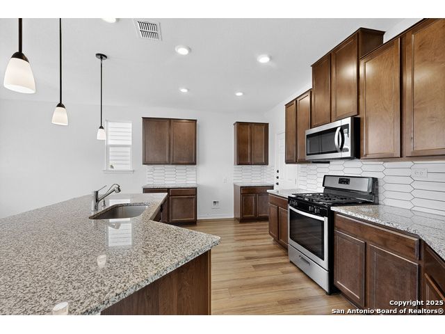 Welcome to this stunning 2-story with 4 bedrooms and 3 bathrooms. Seller never stay in, still brand new home. Inside, you will find a high ceiling and the living area abundant with natural light! The kitchen is thoughtfully designed with plenty of room for meal preparation and entertaining. One bathroom downstairs with a full bath, so convenient. Outside, the covered patio overlooks a well-sized backyard. Prime location offers a short commute with easy access to major highways, including 410 and I-35**, and is just minutes from Joint Base San Antonio (formerly Fort Sam), SA airport, HEB, Korean market, shopping center, restaurants, and more! Don't miss out on this opportunity, prices to sell!!