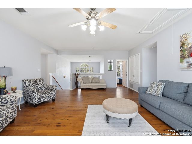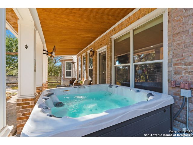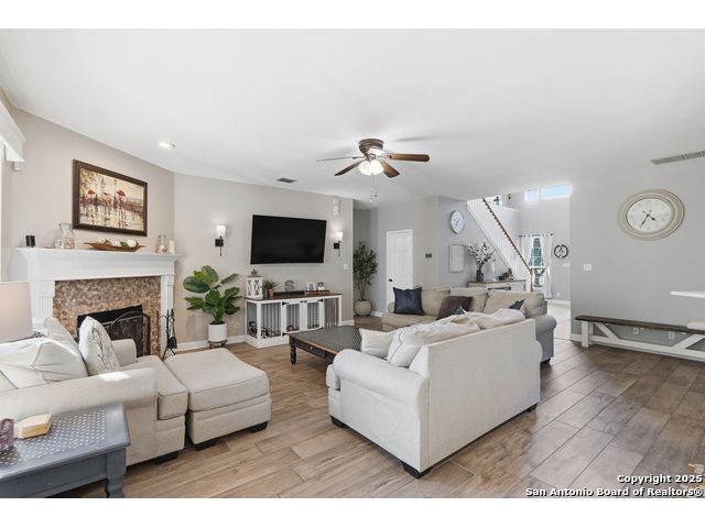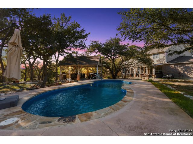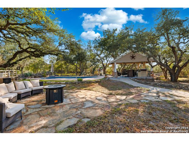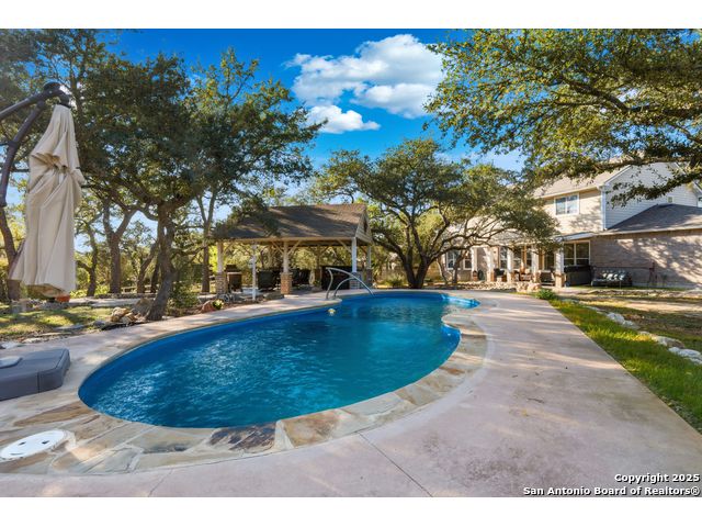Exquisite Texas Hill Country Retreat in River Crossing. Experience timeless Texas charm and modern elegance in this beautifully appointed 5-bedroom, 3.5-bath home set on over an acre in the highly sought-after River Crossing community. Designed for both comfort and entertaining, this residence offers an inviting open-concept floor plan, featuring a spacious living area, a chef's kitchen with abundant cabinetry and great counter tops, and a luxurious primary suite with a spa-inspired bath *Downstairs! Upstairs, a versatile flex room provides endless possibilities for a game room, media lounge, or private retreat. Each secondary bedroom offers generous space and thoughtfully designed closets, ensuring everyone has room to unwind. Step outside to your own private oasis-complete with a sparkling pool, relaxing hot tub, and an outdoor kitchen perfect for gatherings beneath the canopy of mature oak trees and a fully fenced backyard offer privacy with plenty of additional space to expand and explore. Beyond your doorstep, River Crossing offers an unmatched Hill Country lifestyle. Residents can enjoy optional membership to the River Crossing Club, boasting an 18-hole championship golf course, resort-style pool, fitness center, and a vibrant clubhouse with dining and social events. Additionally, homeowners have exclusive access to the River Park along the Guadalupe River, where shaded picnic areas, tennis and basketball courts, walking trails, playgrounds, and kayak/tube access await. With quick access to Highways 46 and 281, commuting to San Antonio, New Braunfels, or Canyon Lake is a breeze. Zoned to prestigious Comal ISD schools & minutes from HEB, SAT International airport, shopping, dining, & so much more. Come experience where comfort, nature, and lifestyle meet-welcome home! Ideally located just minutes from the city, this home delivers the perfect blend of Hill Country tranquility and modern convenience. Discover the beauty, comfort, and lifestyle you've been searching for. Welcome home to River Crossing!