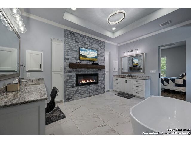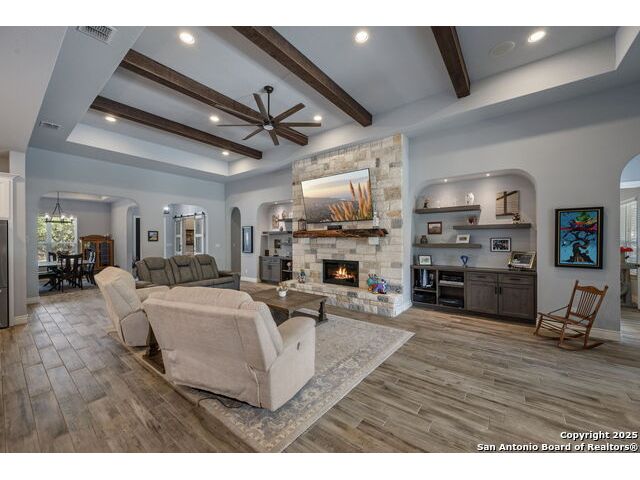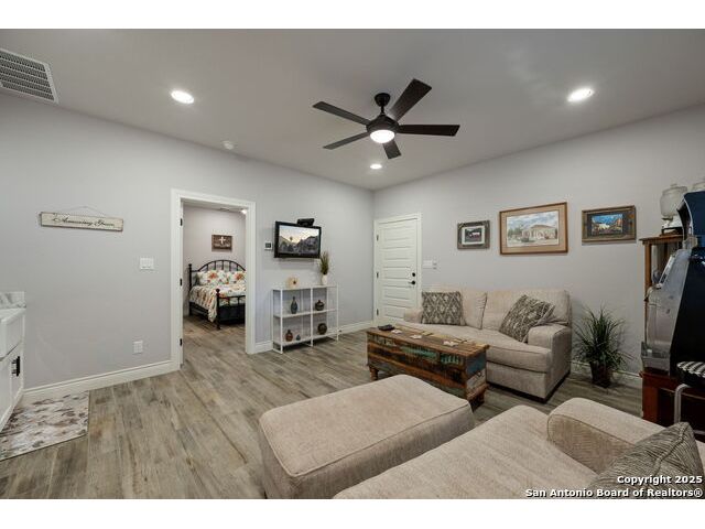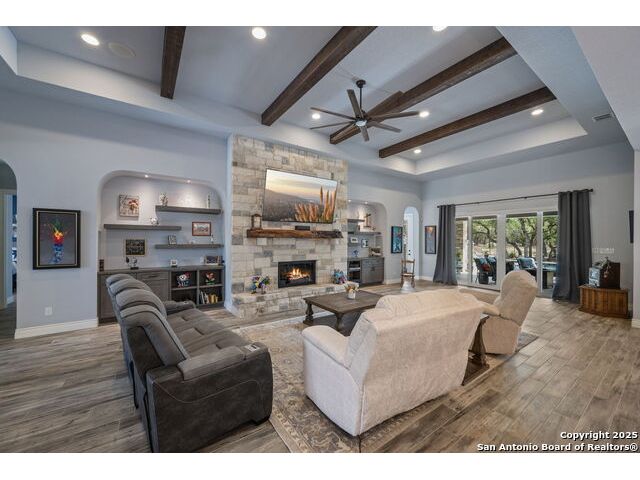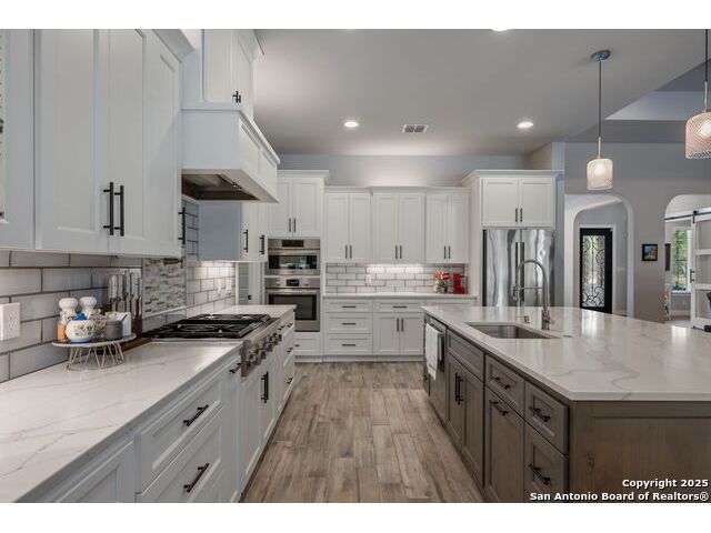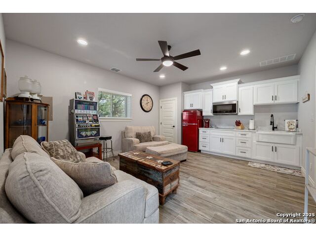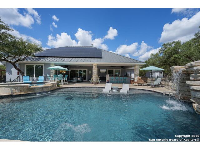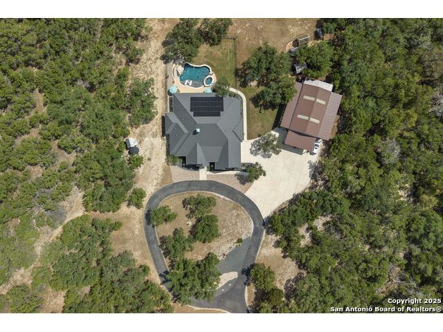 Luxury living meets adventure with this beautiful home situated on nearly 18 fully fenced and gated park-like acres with its very own private cave to explore! The 3 bed/3.5 bath main home offers everything for sophisticated living: a chef's kitchen, designated office space, formal dining area, bar area, sun room, primary bathroom spa-like retreat, and a dream pantry/ laundry room combo! Outside you will find a sparkling pool with a waterfall and slide, an outdoor kitchen, a beer tap, motorized patio screens, chicken coop, garden, storage building, RV hookup, solar panels & well. If that isn't enough, there is also a shop with a tool shed, covered awnings, storage upstairs, plenty of room for projects or game tables and a 1 bed/1 bath apartment downstairs for your extended family or guests! 864 Coyote Ridge Road is where everyday living feels like a getaway. Don't miss out on this once in a lifetime opportunity to go from poolside relaxation to private cave exploration all from the privacy of your own slice of the Texas Hill Country! Schedule a private showing of this amazing estate today!