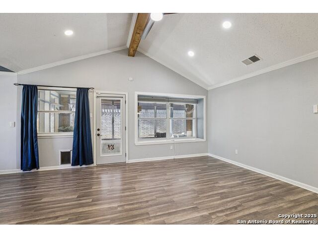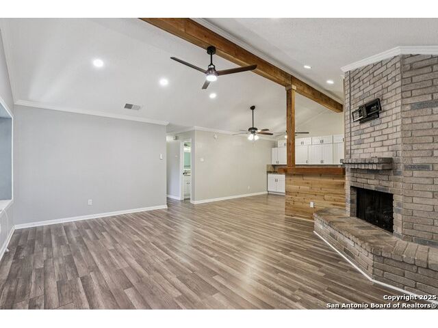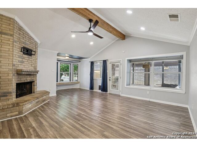Nestled in the heart of Big Country, off 1604 and Highway 90, this beautifully updated home showcases a fresh, modern aesthetic. Recent enhancements include new interior paint, flooring, and kitchen cabinets, as well as the addition of a spacious patio room and Bay window in the living room, which features a warm and inviting fireplace. This garden home boasts an open-concept design, complete with high ceilings, a one-car garage, and backyard, making it an absolute must-see!