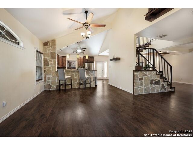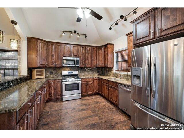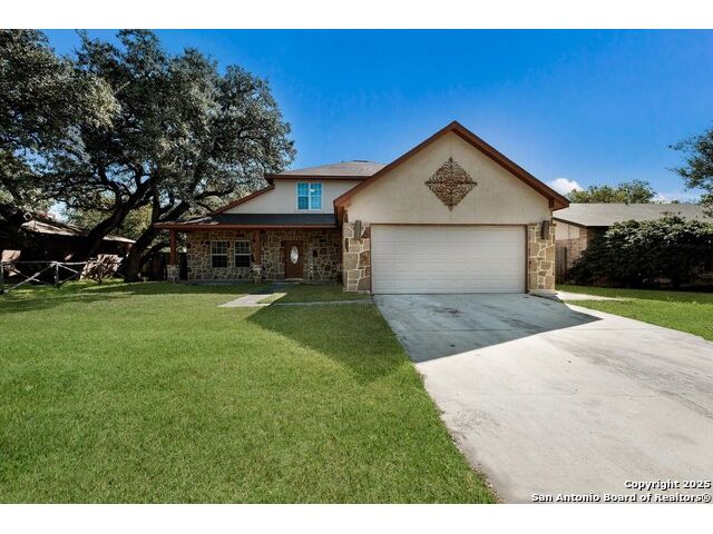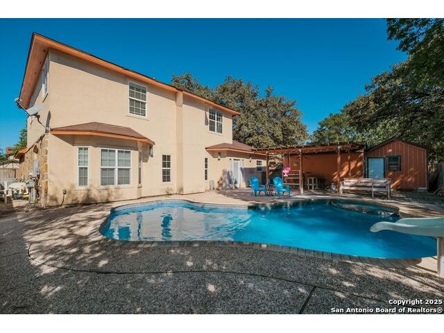 OPEN HOUSE NOVEMBER 29TH FROM 9AM TO 11AM! **Assumable VA Loan 2.75%!!!** Exquisite design and everyday functionality come together in this 4-bedroom, 2.5-bath home featuring thoughtful upgrades and a backyard built for family fun. The open-concept layout offers a spacious living area and kitchen with vaulted ceilings, creating a bright and welcoming space. The kitchen includes gas cooking, granite countertops, and custom cabinetry-perfect for family meals or entertaining guests. Upstairs, the large game room provides the ideal spot for movie nights, playtime, or a home office. Step outside to your private backyard retreat with a sparkling pool, covered pergola area for relaxing or grilling out, and a large shed for extra storage. Located just minutes from H-E-B, shopping, dining, and medical centers-and best of all, no HOA-this home offers both comfort and convenience in a location families love.