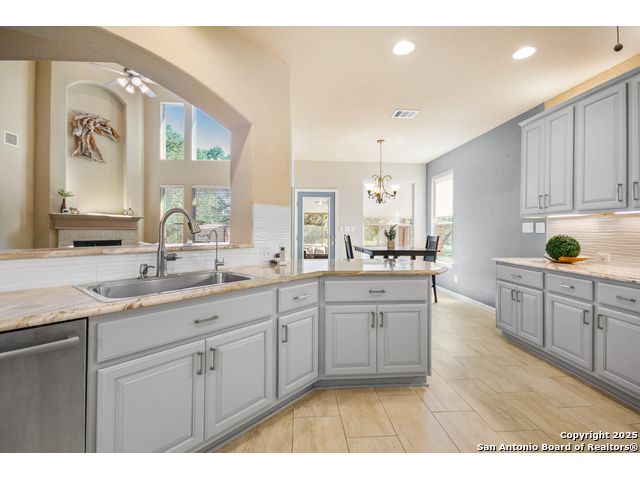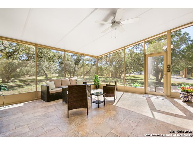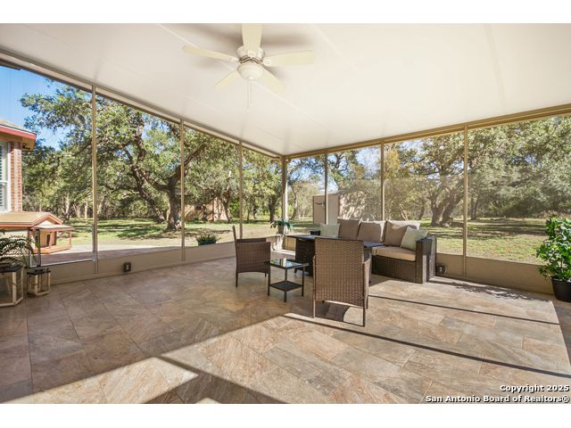 Welcome home to your private retreat in the heart of River Chase, where peace, space, and modern comfort come together beautifully. Set on a fully fenced 2.14-acre wooded lot, this spacious 4+ bedroom home offers the perfect blend of quiet seclusion and convenient access to everything New Braunfels has to offer. Enter through the automatic gate and feel the stress of the day melt away as you're surrounded by mature trees and tranquil natural views. Inside, the updated kitchen is a true centerpiece, featuring granite countertops, custom cabinetry, and abundant storage-perfect for family meals and entertaining. The soaring ceilings in the family room bring the outdoors in, anchored by a warm corner fireplace that creates a welcoming gathering space. Enjoy the flexibility of two dining areas and a downstairs office with French doors that can easily serve as a fifth bedroom. The primary suite on the main level is bright and spacious, offering an updated en-suite bath and a large walk-in closet for ultimate comfort. With new tile flooring downstairs and luxury vinyl plank upstairs, this home is both stylish and low-maintenance-completely carpet-free. Upstairs, you'll find a large loft landing, a game room (currently used as a bedroom), and three oversized bedrooms, each offering generous space and natural light, along with two full bathrooms. Step outside to the 20' x 20' screened-in back porch, perfect for morning coffee, relaxing afternoons, or evenings with friends. Additional open patios and multiple storage buildings provide extra versatility, while the backyard extends deep into the trees for unmatched privacy. Living in River Chase means access to incredible amenities: a private Guadalupe River Park, two swimming pools, a fitness center, clubhouse, fishing pond, playgrounds, walking trails, and tennis courts. Located within Comal ISD and just minutes from shopping, medical facilities, the Historic Gruene District, and all the charm of New Braunfels, this home truly has it all. Come experience the perfect blend of tranquility, comfort, and community-schedule your private showing today!