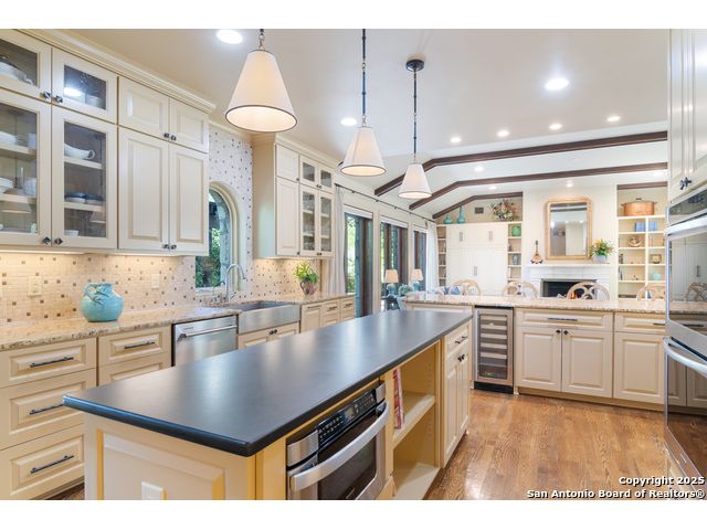 Step inside and discover a harmonious blend of modern sophistication and classic design, beginning with the charming tile roof that crowns the home's limestone facade. The thoughfully curated floor plan maximizes both comfort and functionality, offering versatile spaces tailored to a variety of lifestyles. The great room is a true centerpiece, seamlessly exposing the gourmet kitchen, where expansive windows open up to picturesque views of the sparkling pool and spa, as well as the walled, secluded garden beyond. High-end finishes and meticulous attention to detail are evident throughout, creating an atmosphere that feels both luxurious and welcoming. Perfectly situated close to renowned restaurants, boutique shops, scenic walking trails and a lush neighborhood park. It offers both convenience and tranquility in one of this incorporated city's most sought-after communities. The solarium is another highlight, showcasing Redondo tile floors and custom arched windows.