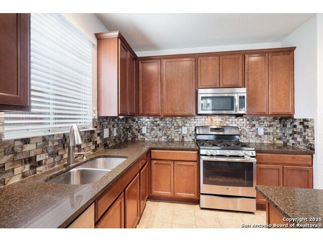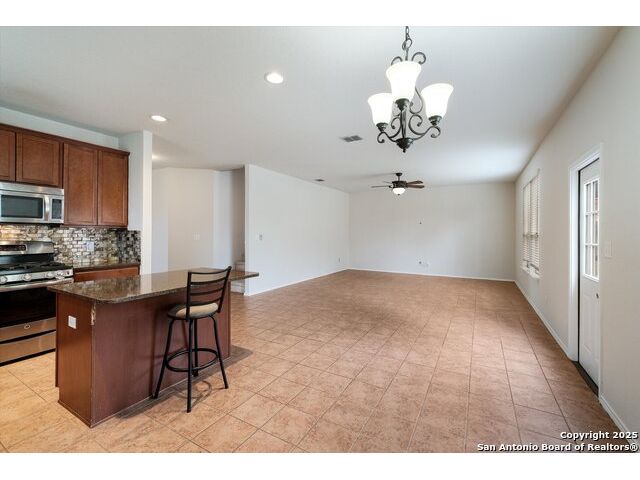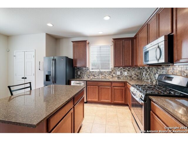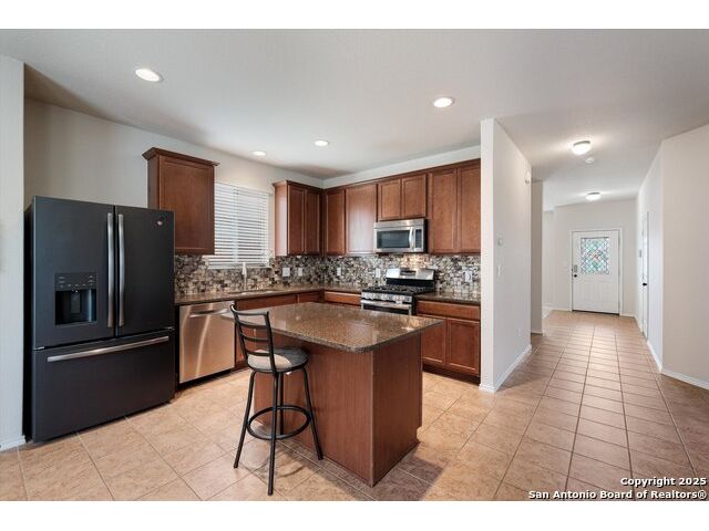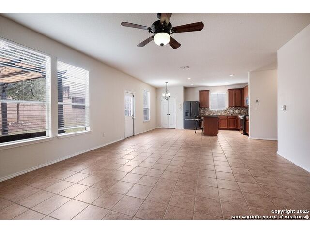 **OPEN HOUSE 12/6 11AM-2PM**This spacious two-story home features 3 bedrooms, 2.5 baths, and a bright, open layout filled with natural light. The first floor welcomes you with an inviting entryway that flows into the family room, formal dining area, and a beautifully updated kitchen with generous counter space. The kitchen opens seamlessly to the breakfast area-perfect for both everyday living and entertaining guests. Upstairs, a large media/game room offers a comfortable retreat for movie nights or relaxation. The primary suite includes a roomy bath and a large walk-in closet, while the conveniently located laundry room off the hallway adds to the home's practical design. Step outside to a private backyard bordered by a stone wall-ideal for outdoor dining, play, or peaceful evenings under the Texas sky. Alamo Ranch is one of the region's most sought-after master-planned communities, known for its exceptional amenities and welcoming atmosphere. Active HOA members enjoy access to a beautiful recreation center featuring a clubhouse, BBQ pavilion, adult lap pool with a thrilling quad-level water slide, a kiddie pool, playgrounds, basketball court, and a multi-purpose sports field.