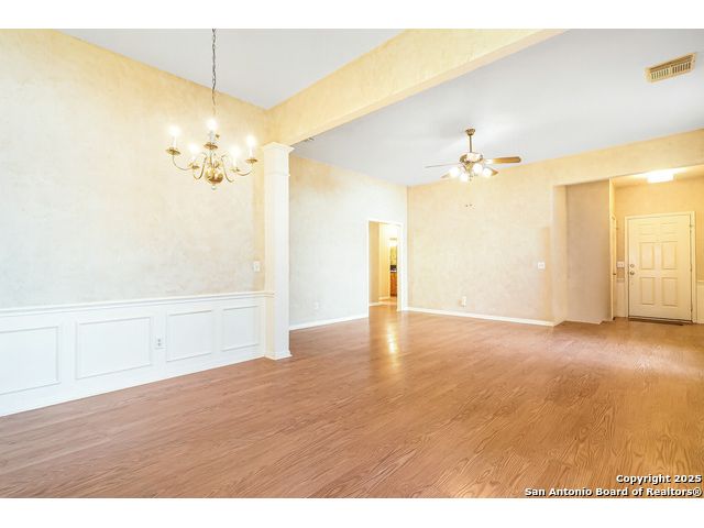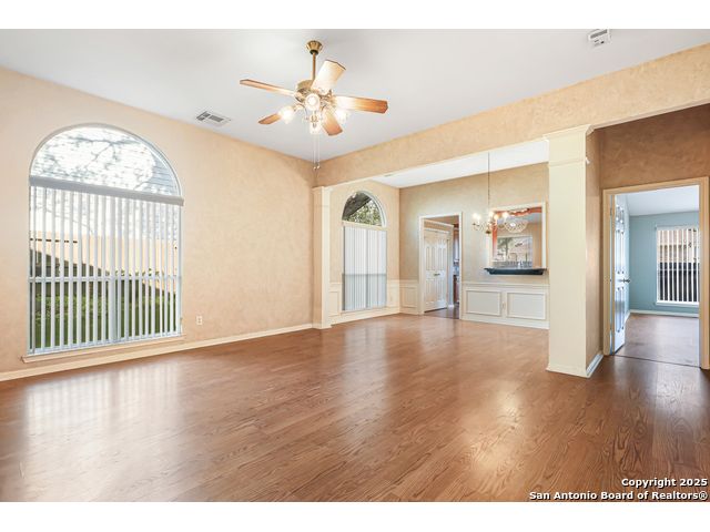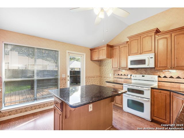 ** OPEN HOUSE SUNDAY 11/09 2 PM - 4 PM ** Charming one-story brick home tucked beneath mature oaks in the heart of Schertz! This open, light-filled floor plan offers 4 bedrooms, 2 baths, and no carpet - wood laminate floors throughout. The spacious kitchen features granite countertops, bar seating, double ovens, and custom cabinetry with pullouts, lazy Susan, and built-in trash storage. Enjoy high ceilings, surround sound wiring, and a split primary suite with updated bath and French door entry. Step outside to a freshly re-stained deck and gazebo surrounded by new sod, mature trees, and a Rain Bird sprinkler system. Recent updates include new HVAC, insulation, lighting, hardware, and exterior paint. Just minutes from New Braunfels, Randolph AFB, San Antonio, lakes, parks, and medical centers - this beautifully maintained home offers comfort, convenience, and timeless appeal.