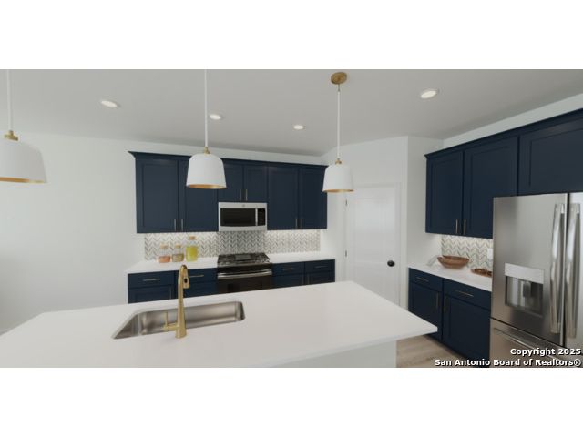 This beautifully designed one-story home blends modern comfort with timeless style, offering an inviting layout perfect for both relaxation and entertaining. The heart of the home is the gourmet kitchen, featuring sleek quartz countertops, upgraded cabinetry, built-in appliances, and a walk-in pantry that provides ample storage for everyday essentials. The kitchen opens effortlessly to a spacious family room, where large windows fill the space with natural light and frame peaceful views of the backyard, creating an ideal setting for gatherings or quiet evenings at home. A closed study near the front of the home offers a quiet space for work or focus, while the secluded primary suite provides a tranquil retreat complete with double vanities, a separate shower, and a generous walk-in closet. Two secondary bedrooms, each with their own walk-in closets offer comfort and flexibility for family, guests, or a creative hobby space. Step outside to a covered patio that extends your living area outdoors, perfect for enjoying morning coffee or weekend barbecues. Thoughtfully planned and filled with elegant finishes, this home combines functionality and warmth in every detail, making it an ideal place to call home. This home is part of our Sapphire Collection-bold, vibrant, and brimming with personality. Bright whites and deep blues mix with layered patterns and textures for an unexpected yet stunning effect. It's a style built for those who love to make a statement, host with flair, and live with unapologetic confidence. Sapphire delivers energy, elegance, and a sense of fun that's unmistakably unique. This home is located in Saddlebrook Ranch, a master-planned community in the charming city of Schertz-named one of CNN/Money's top small towns. Enjoy easy access to I-35, premier shopping, dining, and Randolph Air Force Base. Planned amenities include a sparkling pool and playground, perfect for family fun. With the highly regarded Schertz-Cibolo-Universal City School District nearby, Saddlebrook Ranch offers the ideal blend of community, convenience, and small-town charm.