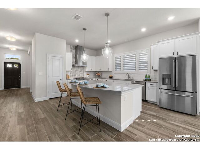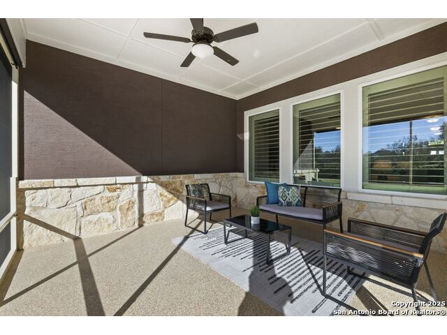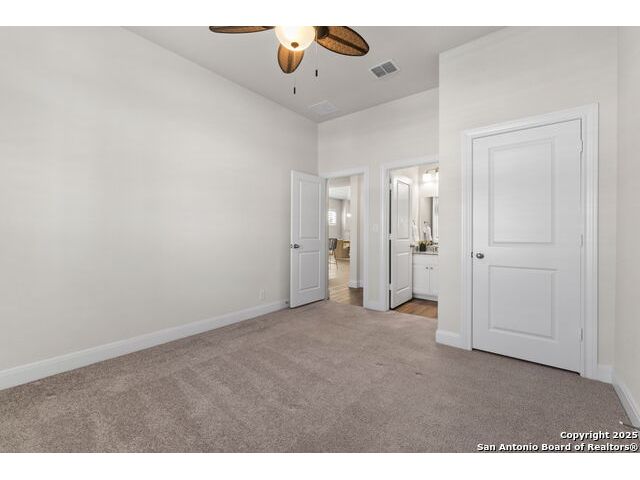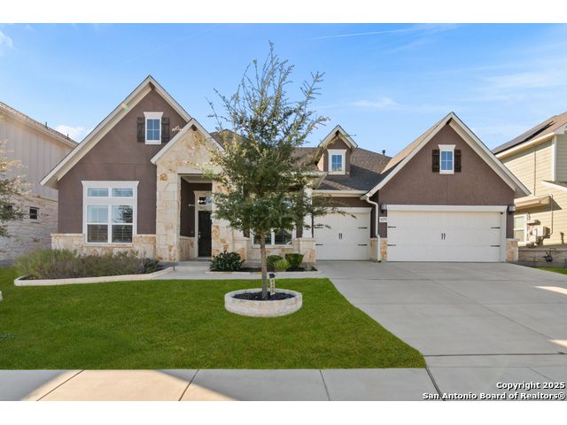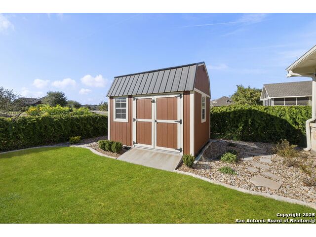 **2.5% RATE ASSUMABLE VA LOAN** Welcome to 8489 Ivy Curl, a beautifully maintained, single story David Weekley home in The Crossvine. Built in 2020 and cared for meticulously, this home offers the best of both worlds: the comfort of newer construction paired with thoughtful upgrades throughout, and an assumable 2.5% VA loan, making it a rare and valuable opportunity. Designed for comfort and function, the layout features a private study or formal living space upon entry, along with a powder room and a comfortable guest suite for visitors. The heart of the home is the spacious open concept living area with a large island, granite countertops, and high end GE Cafe stainless steel appliances, including a professional gas range. A microwave tucked into the island, GE Cafe dishwasher, and matching refrigerator complete the kitchen. Plantation shutters and rich finishes bring elegance to every room. The luxurious primary suite is a private retreat featuring a spa inspired bath with dual vanities, a soaking tub, oversized frameless shower, and an expansive walk in closet. Two sizable secondary bedrooms, separate from the primary, share a full bath, making for a layout ideal for privacy and everyday living. Utility room and mudroom spaces connect seamlessly to the three-car garage with epoxy flooring and quieter belt driven, wifi enabled Liftmaster garage openers. The epoxy flooring extends outdoors to the inviting front and rear patios, the back patio fully screened to enjoy peaceful evenings year round. Outdoors, lush landscaping surrounds the property, and a premium Johnny's Backyard shed provides the perfect space for a workshop or storage. Set within the vibrant Crossvine community, residents enjoy access to running and biking trails, a resort style pool, sports court, park, playground, pavilion, amphitheater, and bocce ball. This must see property is an unmatched blend of lifestyle, convenience, and value.
