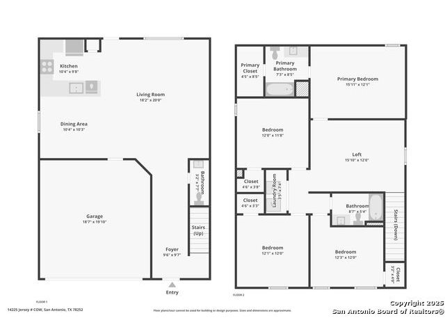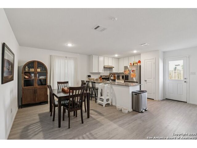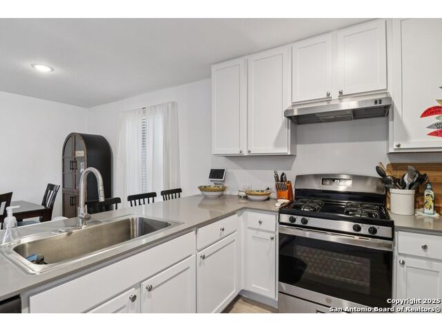 Welcome to 14225 Jersey Cow! Located in the highly sought-after neighborhood of The Silos, this beautiful home feels practically brand new at just one year old. From the moment you arrive, you'll appreciate the charming curb appeal and covered front entry that welcomes you inside. Step through the foyer, passing a convenient half bath, and you'll find yourself in the heart of the home, an inviting open-concept living, dining, and kitchen area designed for both everyday living and entertaining. The thoughtful layout offers just enough definition between spaces, allowing you to easily distinguish the dining area from the living room while maintaining that open, airy feel everyone loves. The kitchen features white cabinetry, granite countertops, stainless steel appliances, a gas range, and a spacious pantry, all arranged in a corner layout that maximizes both flow and functionality. The peninsula provides extra counter space that could double as casual dining if you choose to add stools. Upstairs, all bedrooms are conveniently located together along with the laundry room - no more hauling baskets up and down stairs! The primary suite offers a peaceful retreat with a full bath featuring a tub/shower combo, single-sink vanity, granite counters, and a walk-in closet. Two additional bedrooms and a sizable loft provide plenty of flexible space for guests, a home office, or a playroom. Outside, the backyard offers a level lawn ready for your personal touch - whether that's a garden, play area, or future patio space. Residents of The Silos enjoy access to top-notch amenities, including a pool, fitness center, clubhouse, and playgrounds. The neighborhood's prime location offers a straight shot to Lackland Air Force Base and an easy commute to major employers, shopping, and dining. Come see why this home and community are so loved!