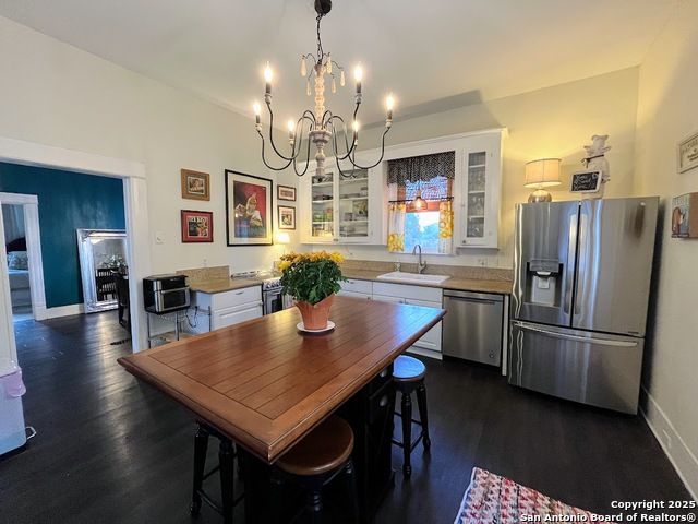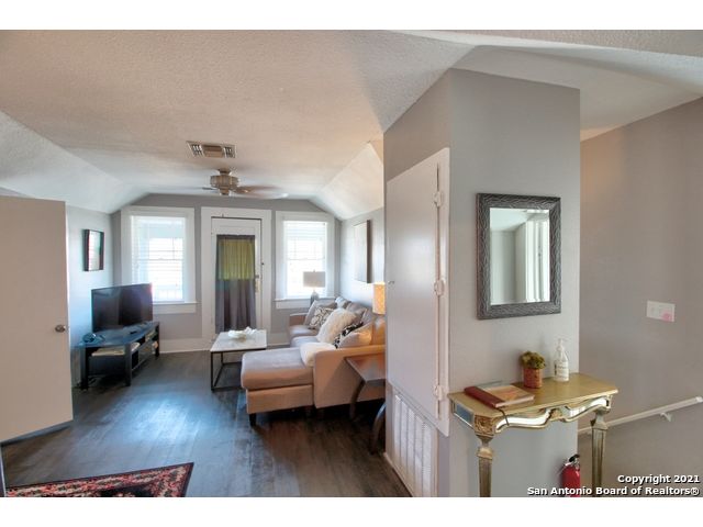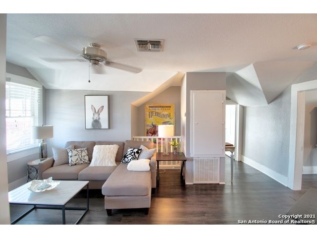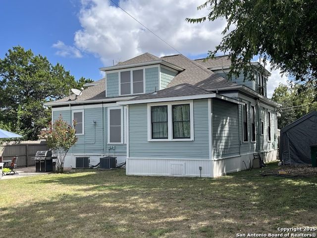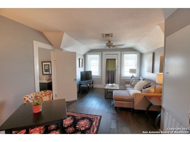 Turnkey historic home with income suite minutes from downtown! Come fall in love with this spacious & charming home in sought after Dignowity Hill. This classic craftsman is equipped with all modern conveniences while maintaining its vintage charm. Up-dated HVAC, plumbing & electric in 2014. New roof, exterior paint and brand new master ensuite with laundry room built in 2023. Home sits on an extra-large lot with new cedar fence. Backyard has a brand new pool with custom built deck & gazebo, plus room to add a garage, if wanted. The main level has 2 bedrooms and 1.5 baths, a grand living room and formal dining area with sparkling chandeliers. Large bonus room currently used as another living room, can be easily turned into another bed/bath if needed. The upstairs is an active 1 bed/1 bath AirBnB that generates roughly $10,000 a year income as a mid-term rental. Upstairs kitchen has amazing city skyline views and has been successfully on rental market for over 5 years. Popular with tenants as is within 1 mile to booming downtown, Riverwalk, The Pearl, AT&T center and many new restaurants and bars. See home on AirBnB site for more apartment photos: ALL FURNISHINGS CONVEY with upstairs apartment. AirBnB financials available upon request.