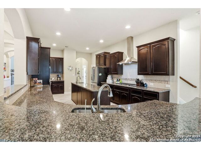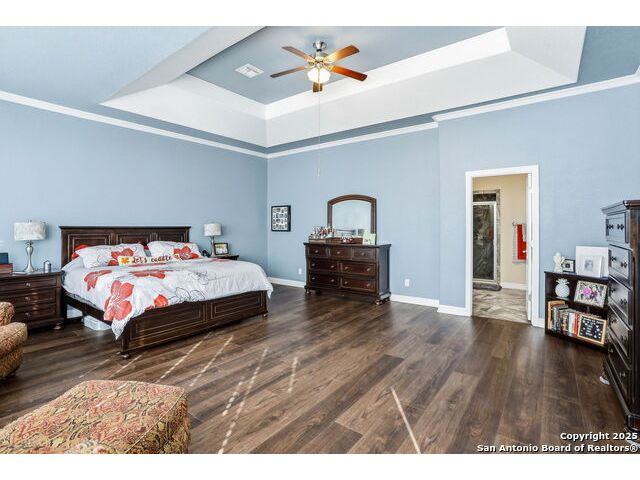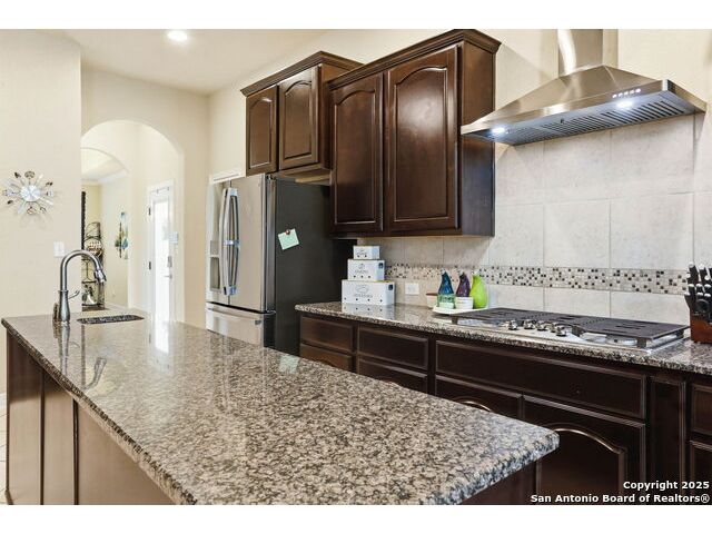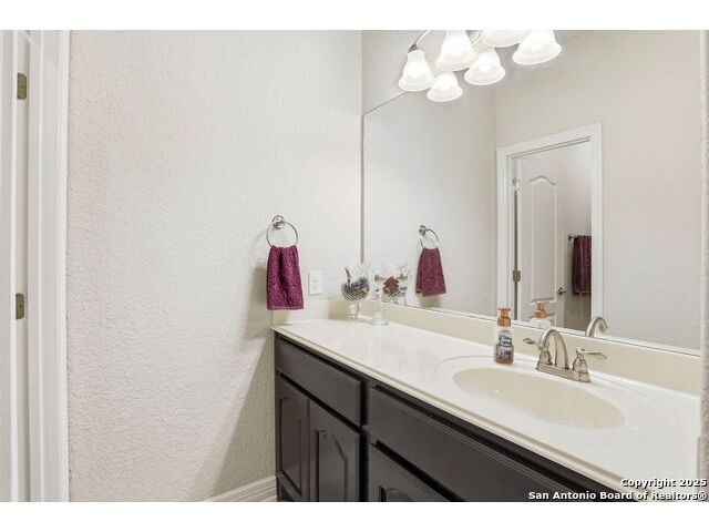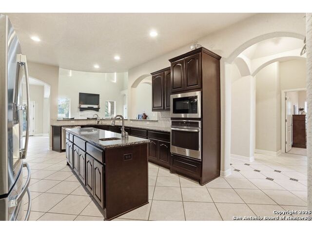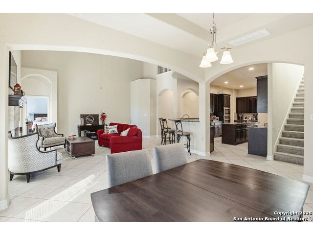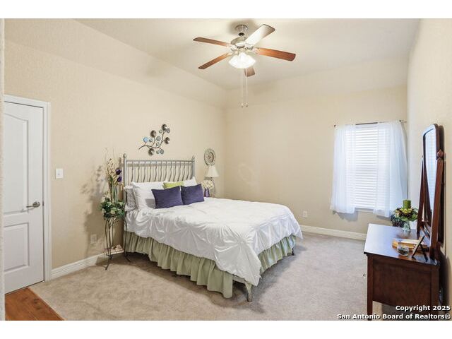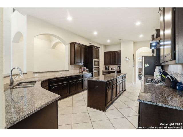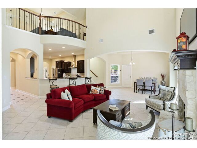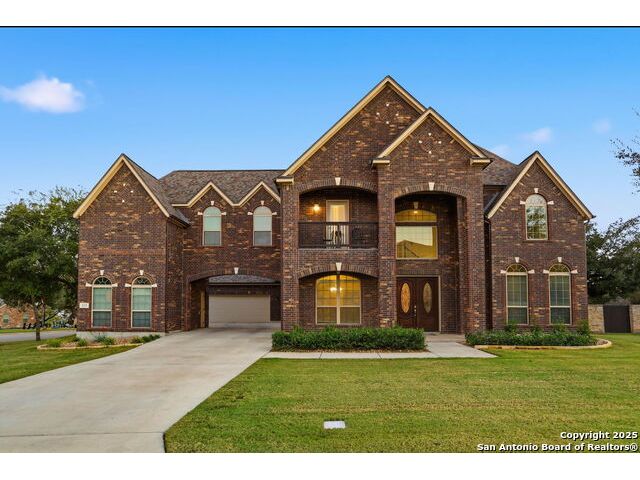 Welcome to 113 Misty Dawn, The Largest Single-Family Residence On The Market in Castroville, TX. A magnificent 4,880 sq ft estate, nestled in the serene and sought-after Potranco Ranch community of Castroville, TX. This exquisite 5-bedroom, 4.5-bathroom residence, set on a sprawling 0.69-acre lot, offers the perfect blend of luxury, space, and Texas Hill Country charm-ideal for families seeking room to grow, entertain, and unwind just minutes from San Antonio's vibrant amenities. Step through the grand double doors into a light-filled foyer boasting soaring ceilings, elegant arched doorways, downstairs primary and guest bedroom, and a dramatic curved wrought-iron staircase that sets the tone for sophisticated living. The open-concept design seamlessly connects the gourmet kitchen-featuring rich dark wood cabinetry, gleaming granite countertops, a large center island, stainless steel appliances, and a gas cooktop-to the inviting family room with its cozy stone fireplace and abundant natural light from oversized windows leading to the expansive downstairs primary suite. Whether hosting holiday gatherings or casual brunches, the adjacent formal dining room and breakfast nook provide versatile spaces for every occasion. Upstairs, discover a private retreat, complete with spa-like en-suite bath, while four additional generously sized bedrooms (each with access to well-appointed baths) offer comfort and privacy for family or guests. The home boasts a dedicated theatre room, perfect for immersive movie nights and family entertainment.. Outside, the brick exterior exudes timeless curb appeal, complemented by a covered entry, balcony overlook, and a three-car garage for ample storage. The oversized lot invites outdoor living with lush landscaping, mature trees, and plenty of room for a pool, garden, or playset-embracing the peaceful, park-like setting that defines Potranco Ranch. The property is distinguished by its elegant stone front fence paired with a wood privacy fence, a rare feature in Potranco Ranch that enhances curb appeal while offering exceptional seclusion and style. Conveniently located near major highways, top-rated schools, shopping, and dining, this home combines small-town tranquility with urban accessibility. Don't miss your chance to own this move-in-ready masterpiece-schedule your private tour today and experience the lifestyle you've been dreaming of!